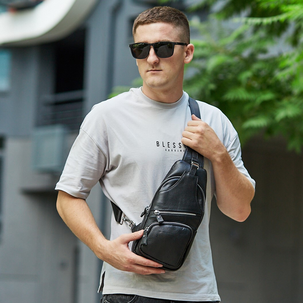 Мессенджер на одно плечо, выполнен из натуральной кожи.