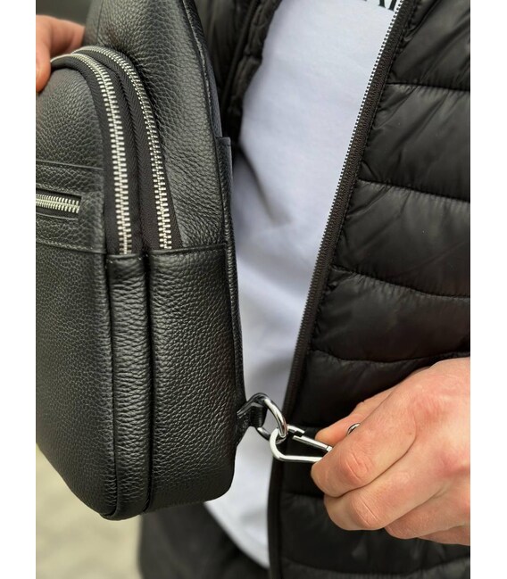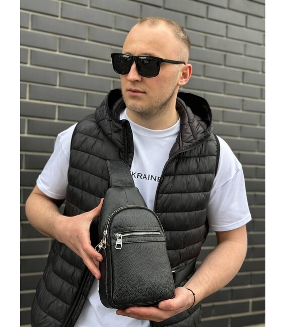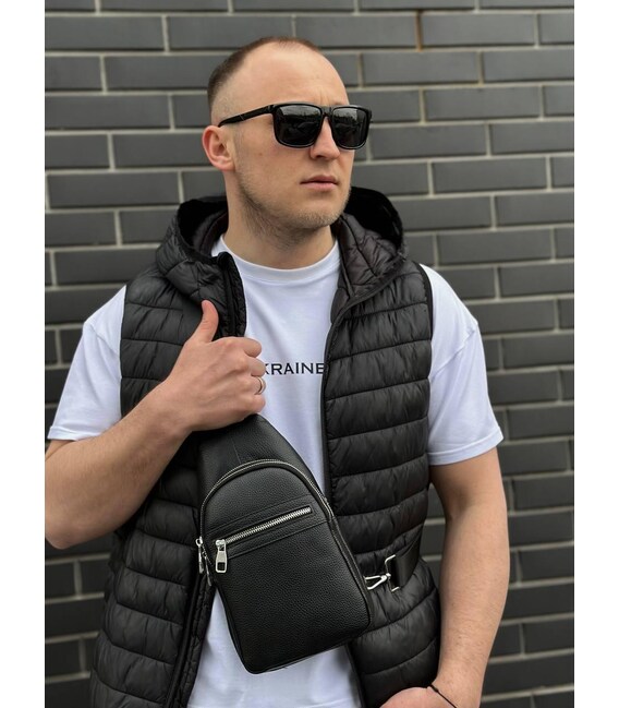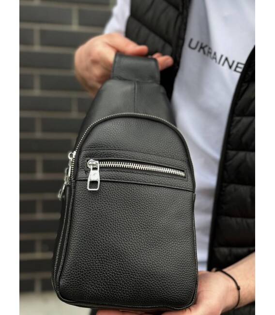 Описание Мужская сумка-бананка через плечо 18х32х7, унисекс рюкзак на грудь с натуральной кожи TIDING BAG 3280 черный