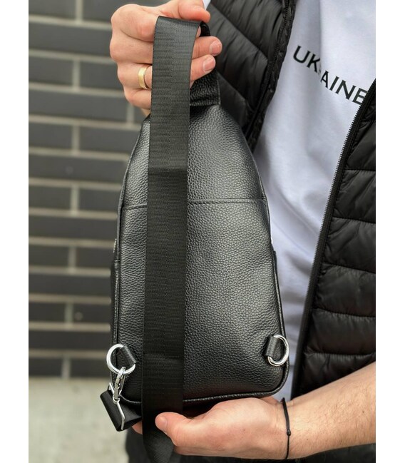 Кожаная сумка-слинг через плечо черная TIDING BAG 3280