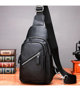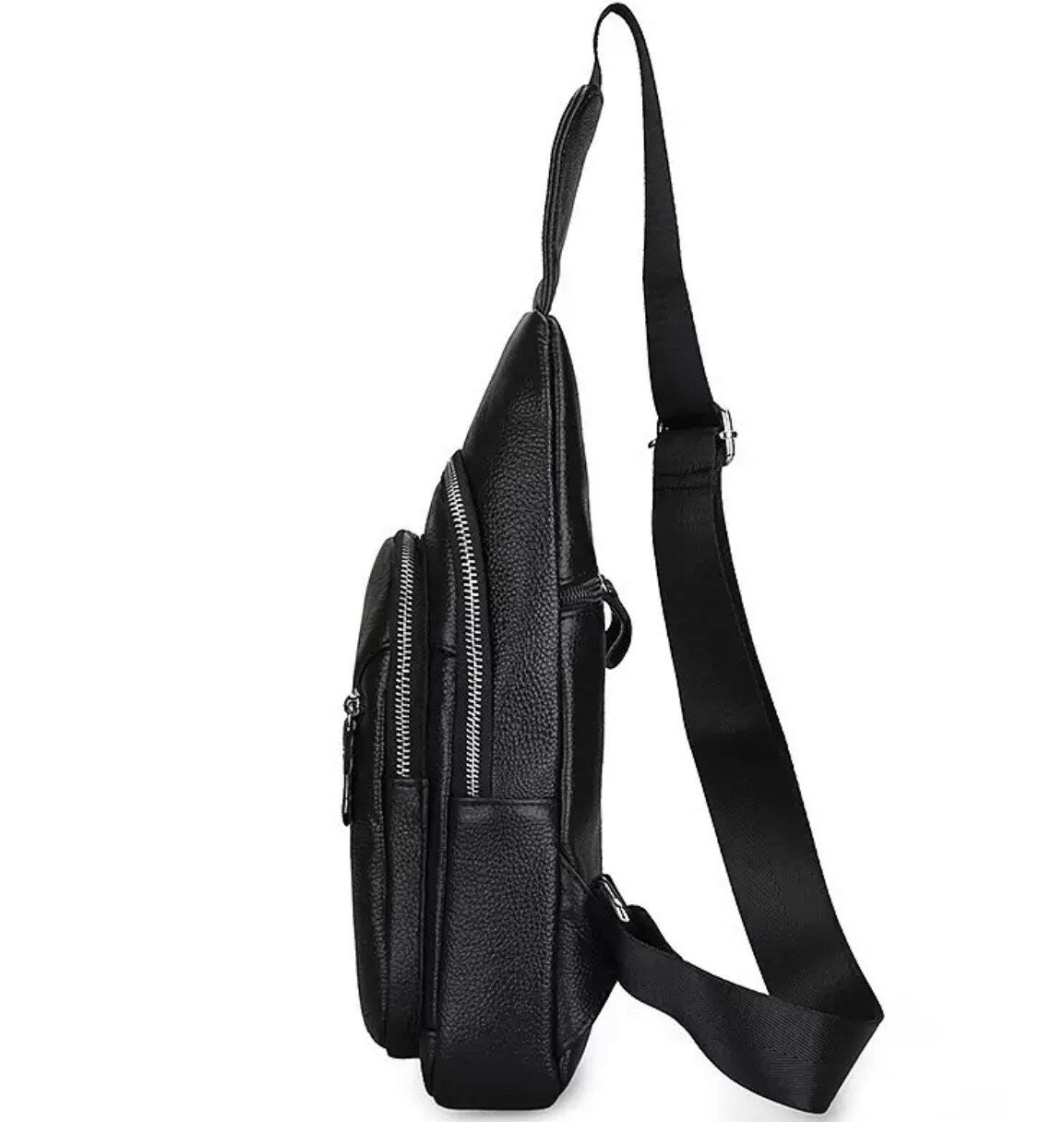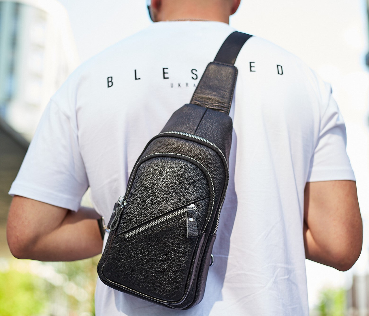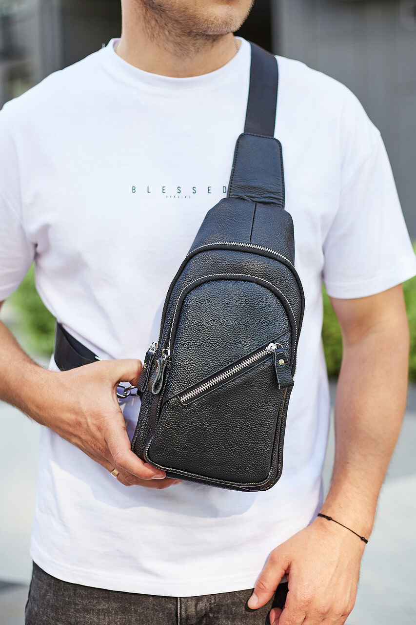 Мужской слинг сумка через плечо кожаная черная Tiding Bag 33737
