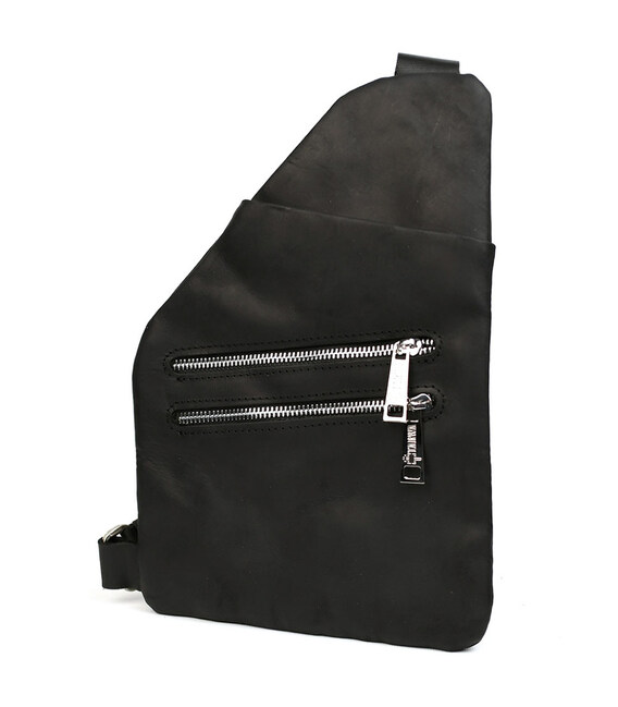 Чоловіча сумка слінг через плече TARWA RA-5402-4lx чорний крейзі хорс. Чоловічий шкіряний слінг незвичайної форми і максимальною функціональністю при носінні. Сумка слінг шкіряна TARWA 5402 корисна у поїздках та подорожах.