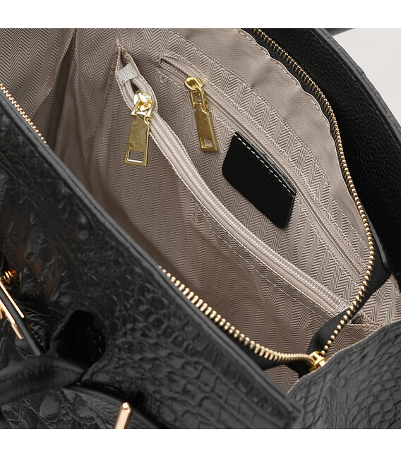 Женская стильная сумка выполнена из натуральной кожи, закрывается на молнию. Имеет 1 основное отделение, внтури 3 кармана для телефона и мелочей и 2 кармана на молнии. С тыльной стороны -1 карман на молнии. Подкладка текстиль. Ручки из натуральной кожи.