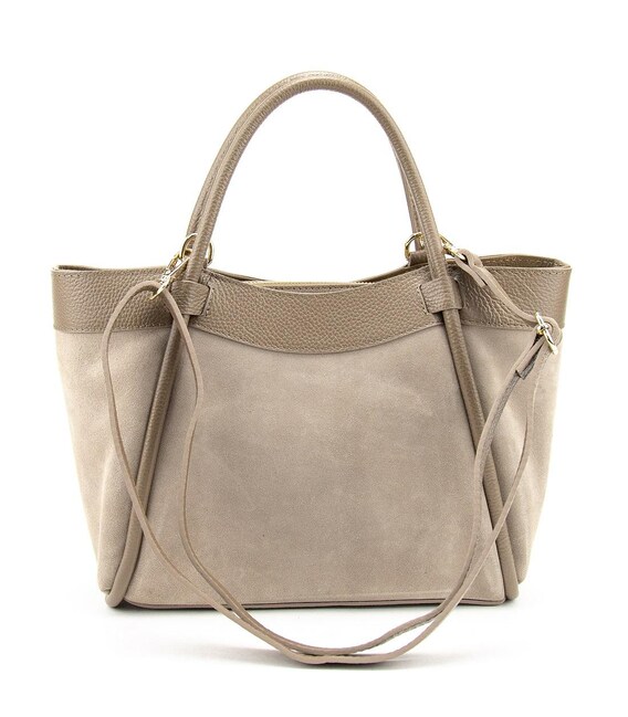 Замшевая женская сумка с кожаной вставкой Firenze Italy F-IT-7668TРазмер: 29(36) x 24 x 12 см. Материал: натуральная замша и натуральная кожаМодель удобна функционально, вместительна, держит форму. Имеет один основной отдел, который закрывается на молнию. Внутри есть кармашки на молнии для мелких предметов. Ремешок кожаный съемный с помощью карабинов.Сумка на металлических ножках. Подкладка текстиль. Цвет Тауп. Цвет фурнитуры: золото.Нашли эту модель дешевле? Свяжитесь с нами, и мы предложим Вам самую низкую цену в Украине, поскольку являемся производителем этого товара.