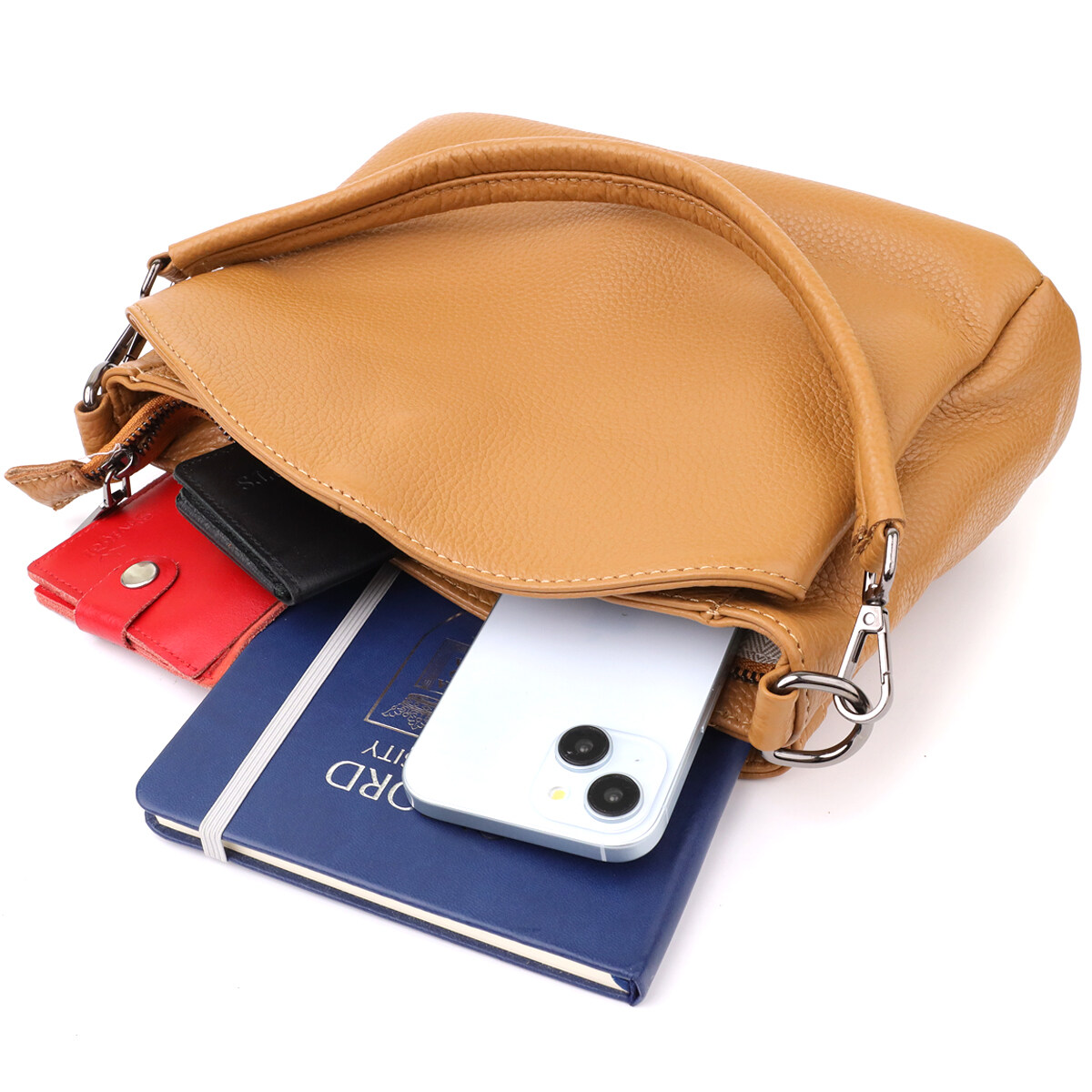 Многофункциональная сумка из натуральной кожи в благородном коричневом цвете станет незаменимым аксессуаром для современной женщины. Ее универсальный дизайн и продуманная внутренняя организация делают модель идеальной как для повседневного использования, так и для деловых встреч или поездок.