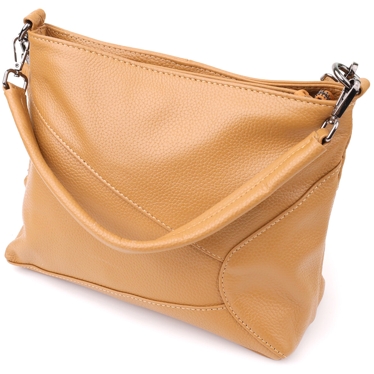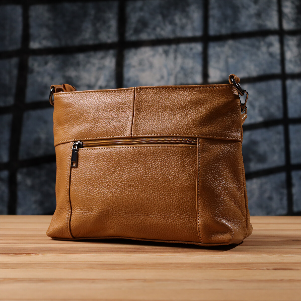Эта светло-коричневая кожаная сумка станет надежным и элегантным спутником, который сочетает в себе комфорт, функциональность и утонченный вкус.