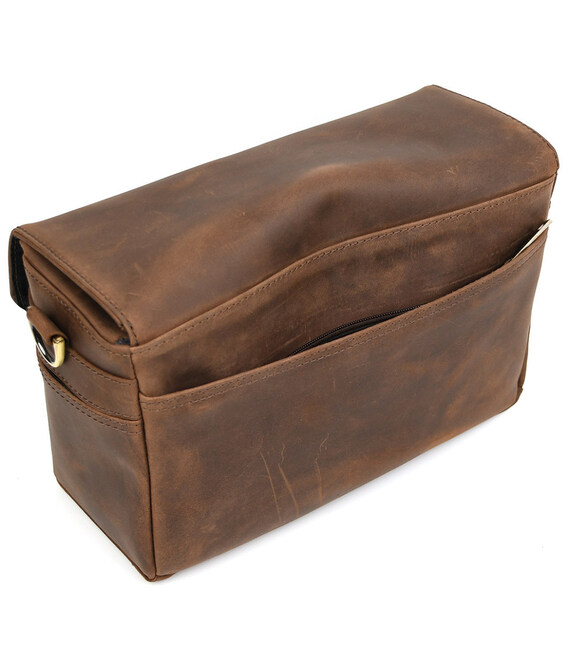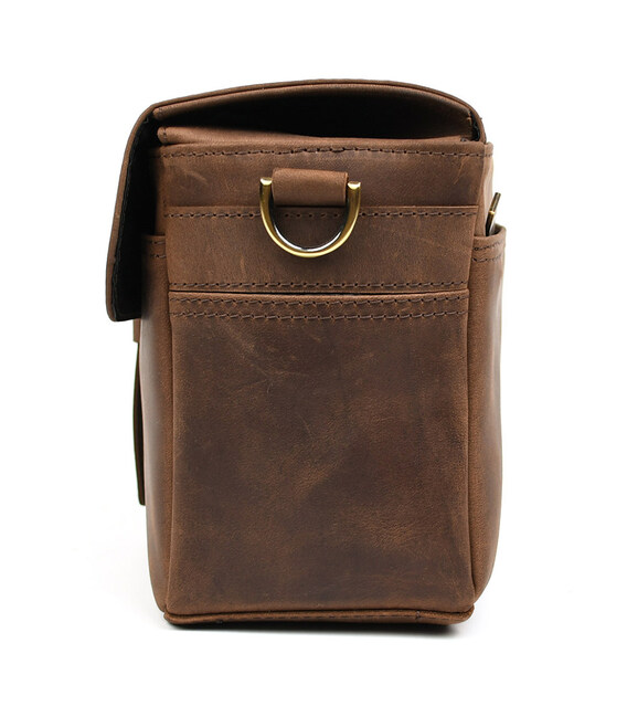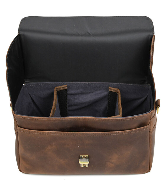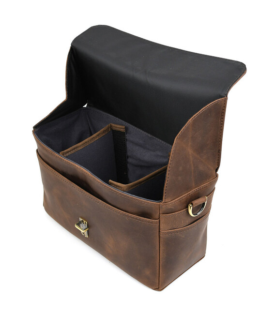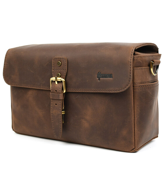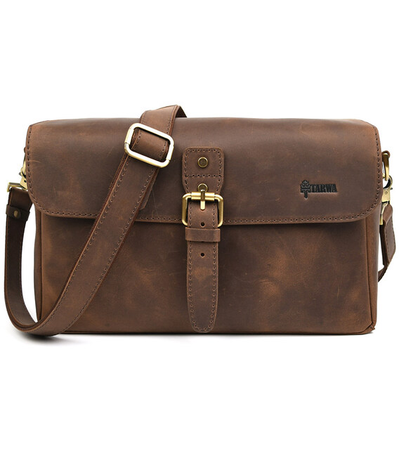 Фото сумка для камери шкіряна крейзі хорс TARWA RC-1314-4lx Фото сумка для камери шкіряна крейзі хорс TARWA RC-1314-4lx - сумка середньо-великого розміру для фото або відео камери та одного або кількох об'єктивів та інших аксесуарів. Пошитий повністю з натуральної шкіри крейзі хорс. Закривається клапаном із захисними краями від опадів на портфельний замок на передній стінці. Ремінь шкіряний, двокомпонентний, на карабінах.