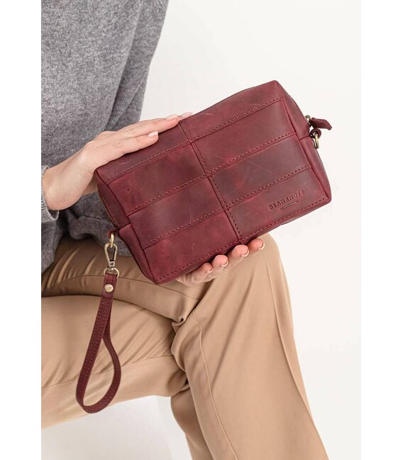 Кожаная косметичка-несессер в бордовом цвете предназначена для хранения и переноски предметов гигиены, косметики, инструментов или зарядок для гаджетов, дорожных принадлежностей и прочих мелочей. Этот аксессуар полезен не только для дома, он также поможет в организации поездок. С таким несессером можно рационально использовать внутренний объём дорожного чемодана и небольшой сумки.Кожаная косметичка-несессер состоит из одного отделения и закрывается на тракторную молнию. Несмотря на кажущийся небольшой размер, аксессуар очень вместителен. Имеется съемный ремешок, который позволит носить несессер на руке.Косметичка изготовлена из множества лоскутов натуральной винтажной кожи, которые формируют неповторимый узор.100% ручная работа.За счет стильного дизайна косметичка-несессер может стать хорошим подарком.Гарантия на аксессуар - 3 года с момента покупки.ВНИМАНИЕ! Выделка данной кожи предполагает естественное появление на ней царапин и потертостей в ходе использования! От этого изделие становится более индивидуальным и приятным, это оценят настоящие поклонники винтажного стиля:) А так же первое время кожа может краситься при сильном трении об другие предметы - это особенность её выделки, постепенно этот эффект уменьшается, кожа полируется и приобретает чуть глянцевый эффект.Фурнитура и комплектация может быть изменена производителем