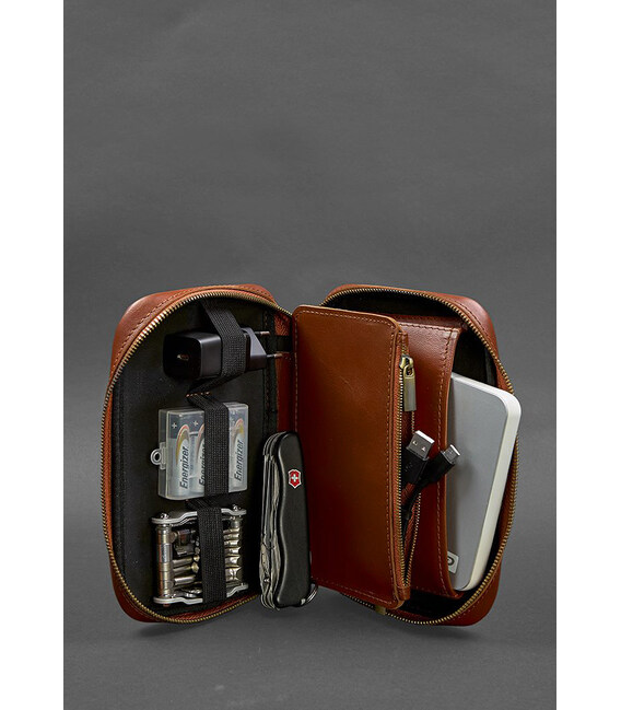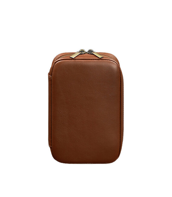 Описание Кожаный дорожный органайзер для проводов, косметичка-несессер 7.0 светло-коричневый краст