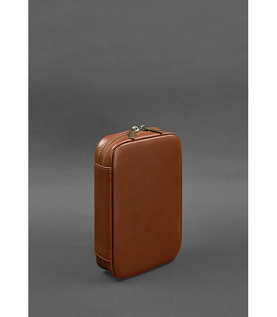 Кожаный дорожный органайзер для проводов, косметичка-несессер 7.0 светло-коричневый краст