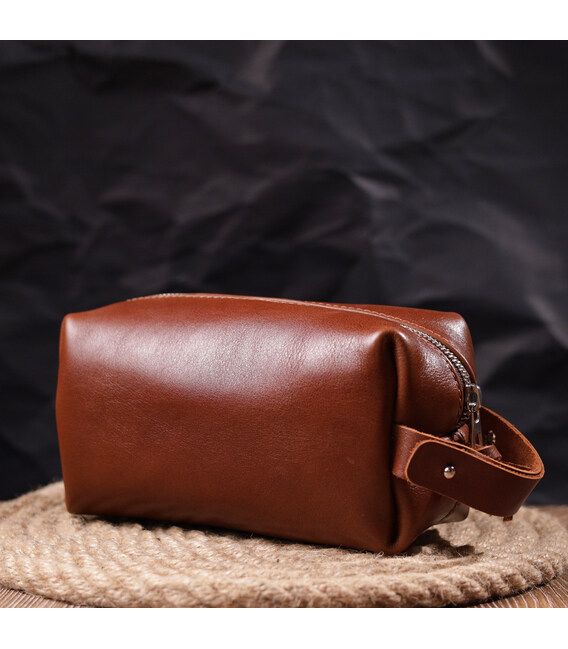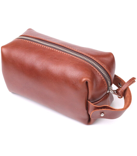 Описание Мужской несессер среднего размера из гладкой кожи на молнии Украина GRANDE PELLE 16766 Светло-коричневый