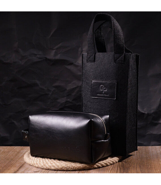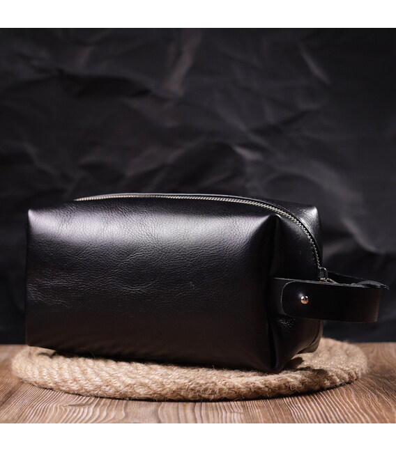 Описание Нессесер мужской большого размера из гладкой кожи на молнии Украина GRANDE PELLE 16767 Черный