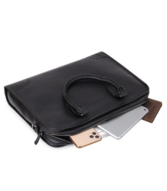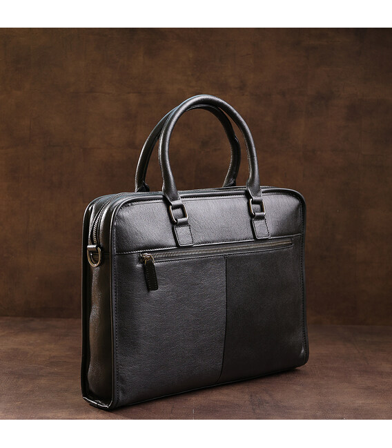 Практичная и универсальная мужская сумка из высококачественной натуральной кожи с отличными эксплуатационными характеристиками. Внутри сумки расположилось просторное и вместительное отделение на молнии, в котором также присутствует карман на липучке для планшета или ноутбука, небольшой потайной карман на молнии и два кармашка для телефона. Сумка имеет две прочные ручки и съёмный текстильный ремень через плечо. Данная модель отлично впишется в гардероб любого делового человека.