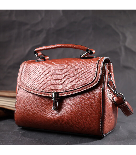 Описание Женская кожаная сумка с защелкой для города и повседневного использования Vintage 22417 Коричневая