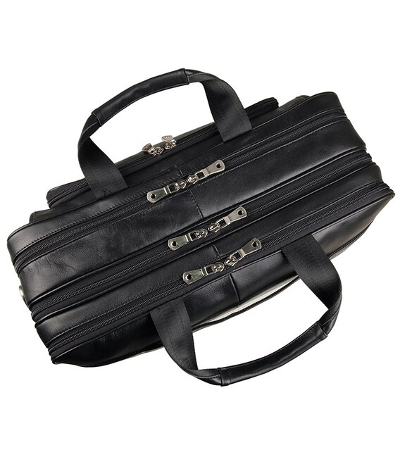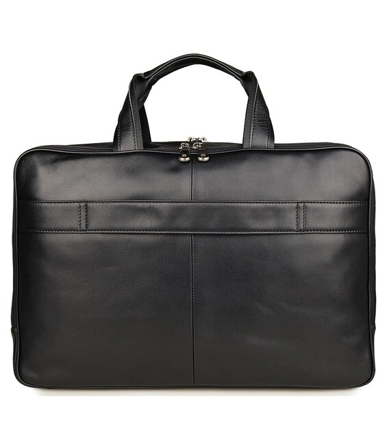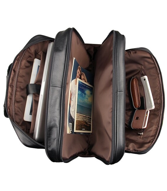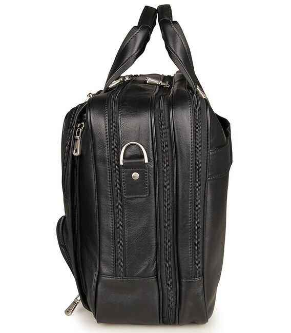 Эксклюзивная, многофункциональная, удобная кожаная сумка черного цвета. В таком огромном аксессуаре поместится практически все. При необходимости, в данной сумке можно переносить ноутбук с диагональю 17 дюймов. Носиться аксессуар через плече (в комплекте съемный, регулируемый плечевой ремень), а также в руке. Цвет фурнитуры: серебро. На лицевой стороне изделия расположены 3 небольших кармана на молниях. Подкладка выполнена из прочного текстильного материала темно-коричневого цвета. Сумка упакована в пылезащитный чехол белого цвета.