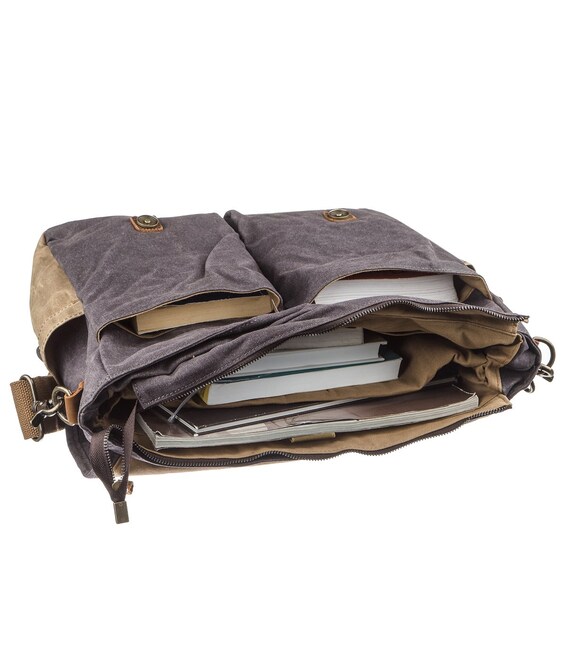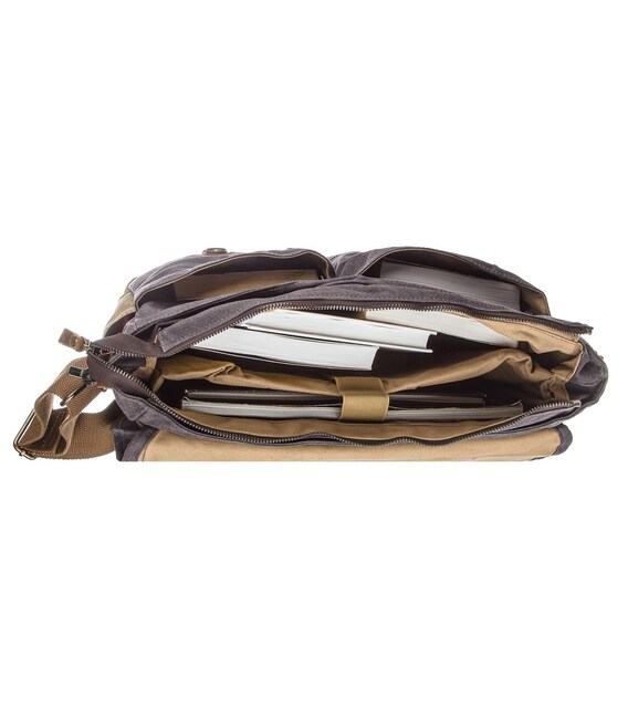 Вместительная деловая сумка с винтажным дизайном. Cумка зготовлена из вощеной парусины в сочетании с натуральной винтажной кожей. В изделие легко поместится ноутбук диагональю 15.6 дюймов. Модель очень крепкая. Модель имеет множество удобных карманов и прекрасно подойдет для повседневной жизни. Сумка сочетается с любым вашим стилем. Такая сумка станет хорошим и доступным подарком для любого мужчины.