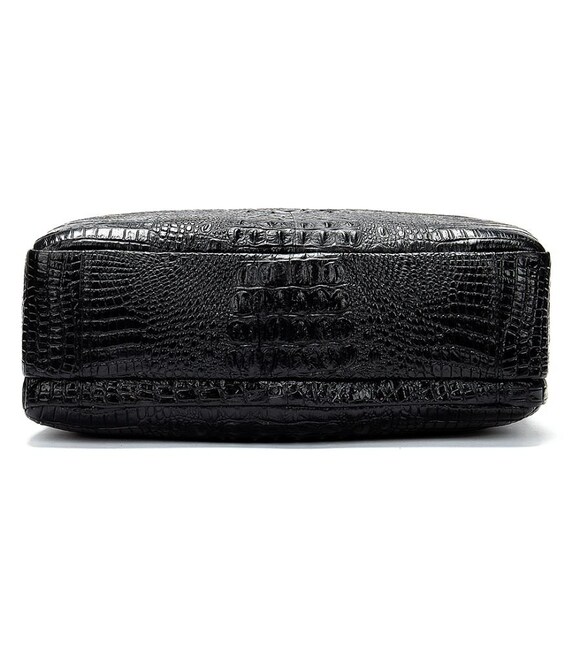 Солидная, качественная сумка с тиснением под крокодила из натуральной кожи. В сумке удобно носить ноутбук, документы формата А4. Аксессуар прошит черной нитью.