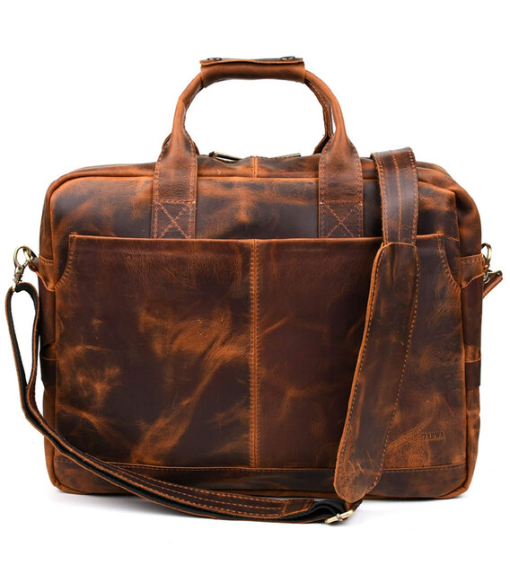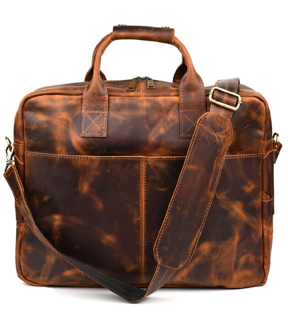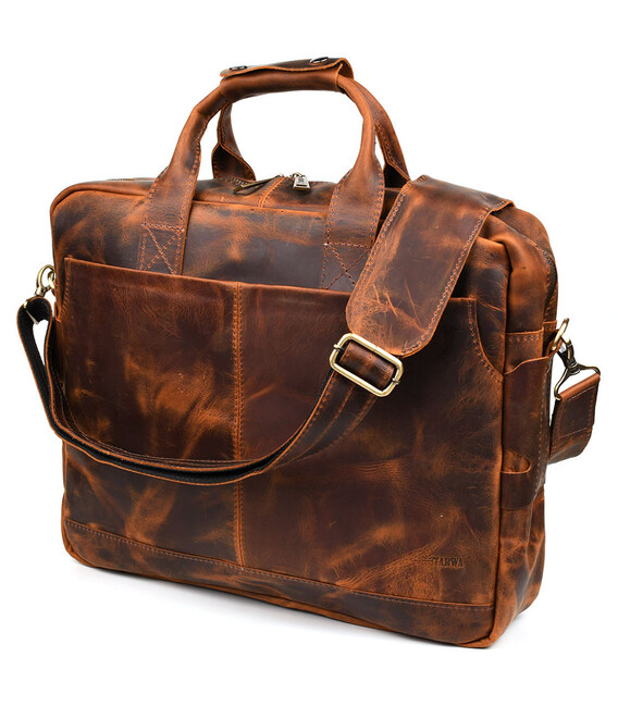 Чоловіча сумка для ноутбука 17" з натуральної шкіри RY-1019-3md від TARWA. Функціональна сумка, ідеально підійде на кожен день, для ділових зустрічей та відряджень. Теракотова шкіра крейзі хорс. Вміщує ноутбук 14", 15", 17", документи А4 .