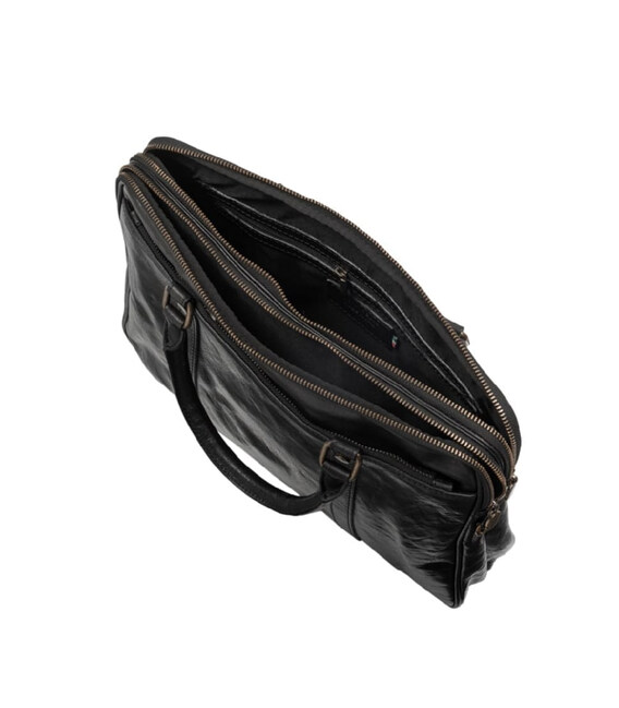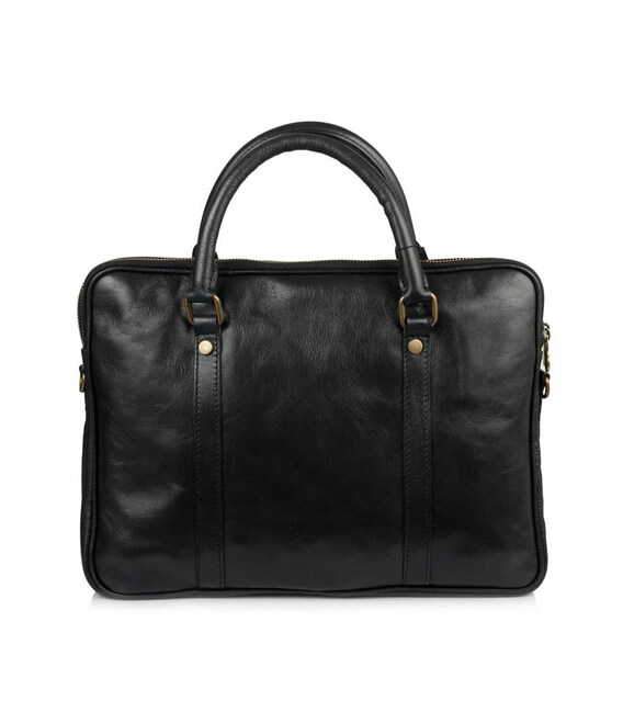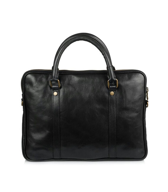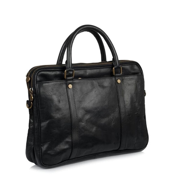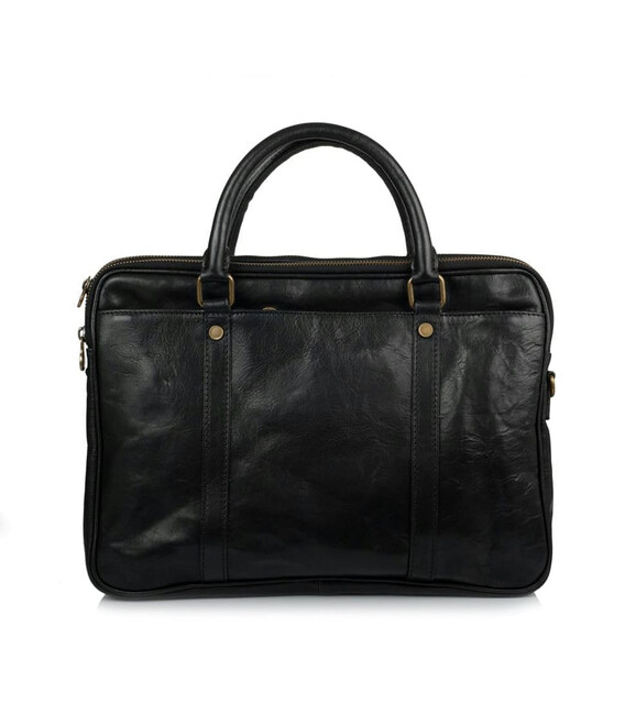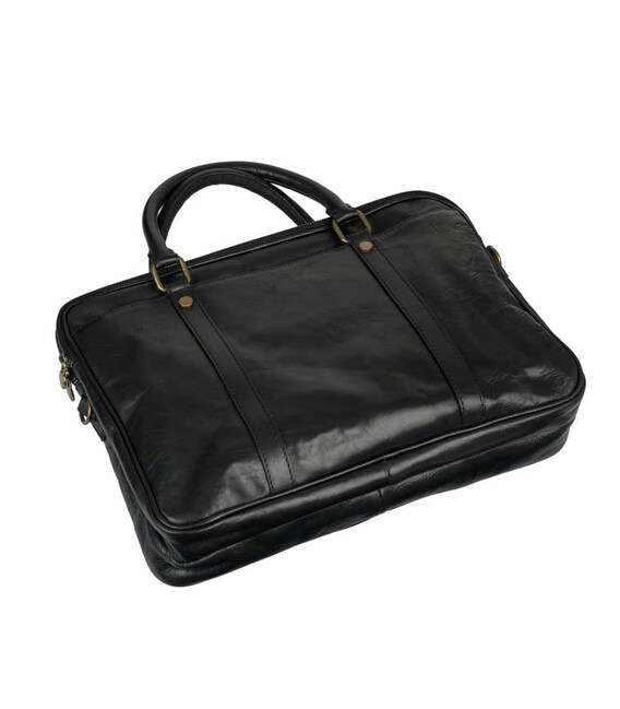 Стильний пошиття, універсальність, висока місткість чоловічої шкіряної сумки на два відділення 0502 у чорній шкірі рослинного дублення.