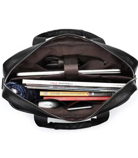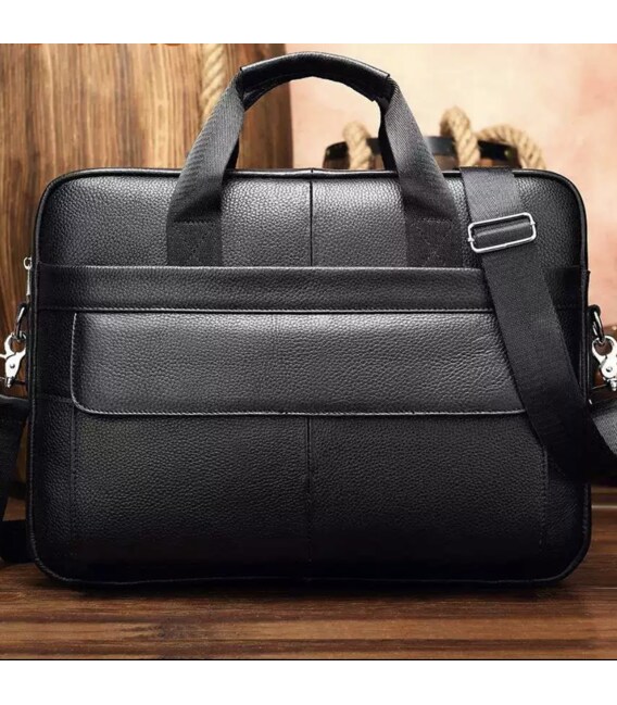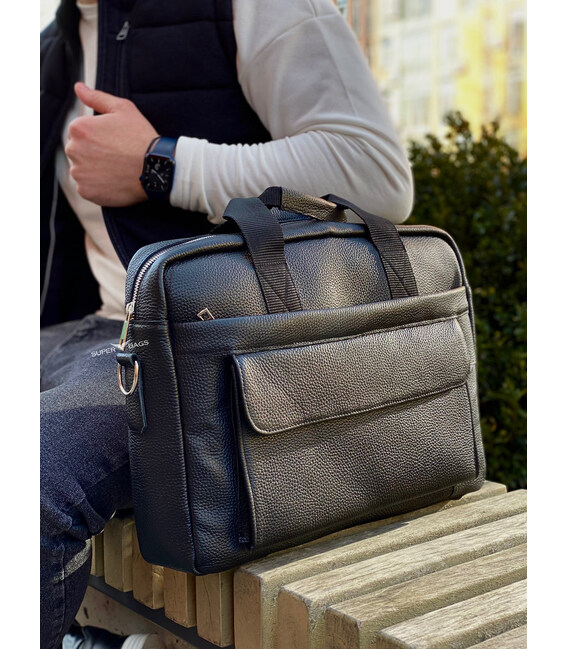 Описание Мужская кожаная сумка для ноутбука и документов 39х28х8, портфель для города Tiding Bag RD-23134 черный
