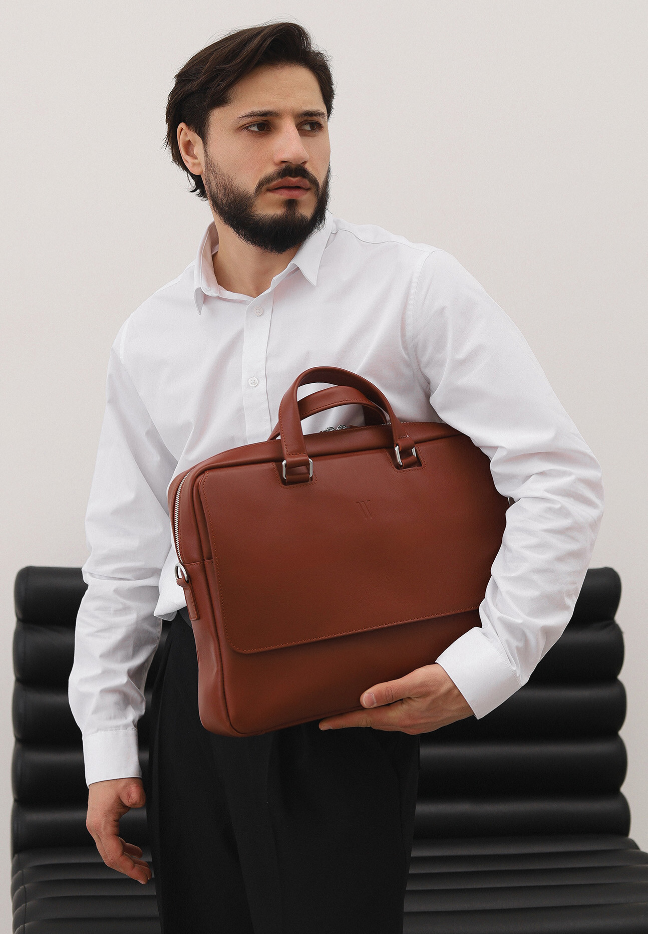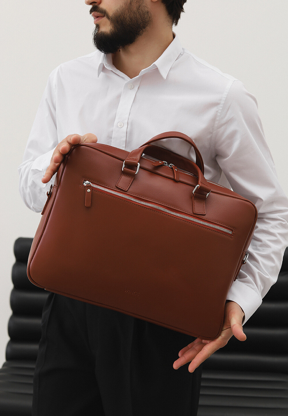 Если вы ищете сумку, которая сочетает стиль, удобство и надёжность, кожаная сумка для ноутбука Wings Style станет идеальным выбором. Она, словно идеально сшитый костюм, подчёркивает ваш вкус и статус, одновременно обеспечивая практичность в повседневном использовании.Сумка изготовлена из натуральной кожи высокого качества, что не только придаёт эстетичность, но и гарантирует долговечность. Мягкая на ощупь, но прочная, эта кожа со временем приобретает благородную текстуру, как выдержанное вино. Сдержанный дизайн с классическими линиями подходит как для деловых встреч, так и для повседневного использования.Основное отделение закрывается на надёжную молнию, защищая ваши вещи от непогоды и случайного открытия. Внутри:Специальный отсек для ноутбука (максимум – MacBook Pro 16"), обеспечивающий безопасность вашего гаджета; Два компактных кармана (15×17 см) для аксессуаров – зарядного устройства, мышки или блокнота;Внешние карманы:На задней стенке – скрытый карман на молнии (30 см), идеально подходящий для документов или ценных вещей; На передней стенке – просторный карман на всю ширину сумки, закрывающийся клапаном на магнитах. Он надёжно скроет ваши личные мелочи, сохраняя их в быстром доступе.Сумка комплектуется регулируемым плечевым ремнём из кожи, который крепится на прочные карабины. Его можно легко снять или подстроить под нужную длину – так же, как настраивают руль в роскошном авто для максимального удобства водителя.Изделие рассчитано на длительное использование, что подтверждается гарантией 3 года. Это ваш надёжный спутник в бизнесе, путешествиях и повседневной жизни.Wings Style – это не просто сумка, а ваша уверенность в том, что все важные вещи всегда под рукой, в идеальном порядке и в безопасности.