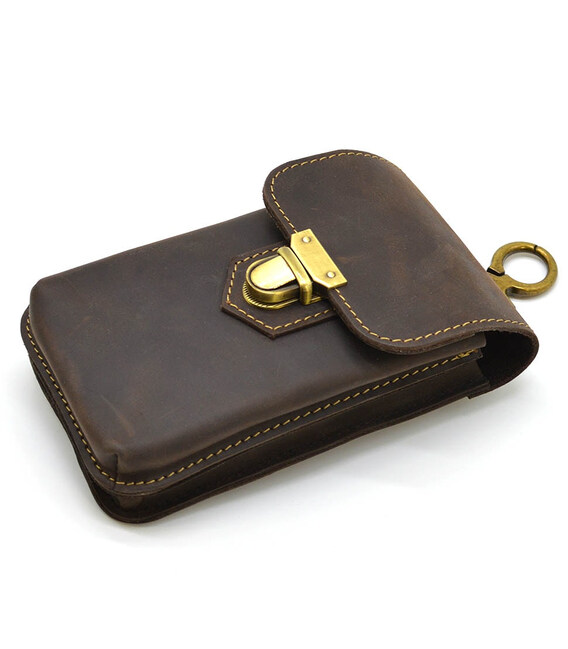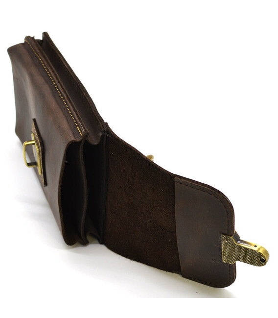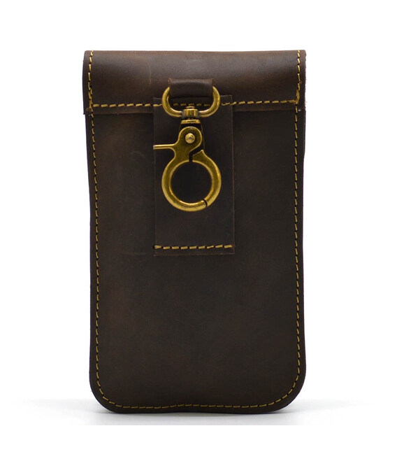 Шкіряна сумка чохол на коричневий пояс TARWA RC-2092-3md, на ремінь, з натуральної шкіри крейзі хорс з клапаном на застібці. Коричнева шкіра. Носиться шляхом надягання на пояс або карабіном до петлі штанів, на лямку рюкзака.