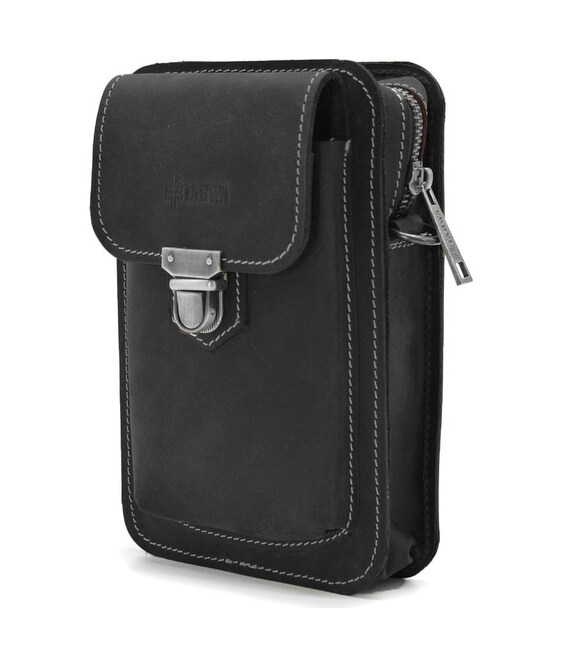 Сумка чохол через плече, поясна сумка TARWA RAw-0075-3md зі шкіри Crazy Horse. Шкіряна сумочка на поясі з товстої кінської шкіри. Буде потрібна для любителів носіння смартфона на поясі або на петлі джинс. Усередині шкіряне оздоблення.