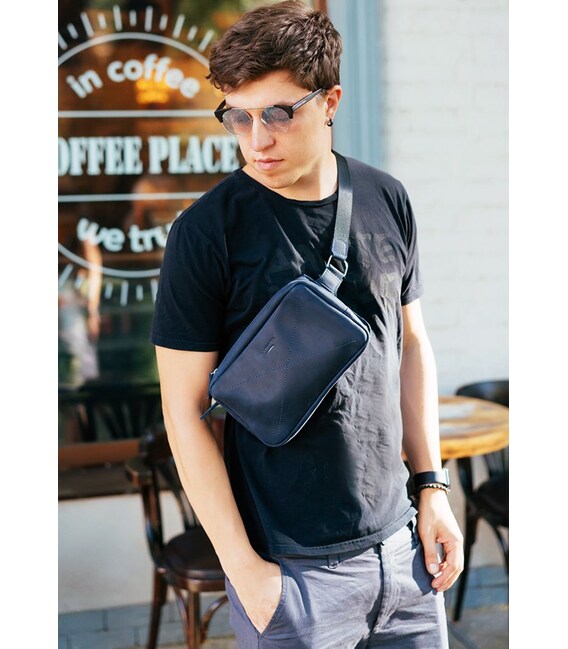 Представляем Вашему вниманию нашу новую поясную сумку DropBag maxi. Она выполнена полностью по образцу Dropbag mini, но в большем размере. Это стильный и практичный аксессуар одновременно. Незаменимой такая сумка будет в путешествиях. В ней легко поместятся паспорта, билеты, деньги, телефон и прочие мелочи, которые необходимо в поездке держать под рукой. И не нужно переживать за сохранность этих вещей. DropBag maxi можно носить как на поясе, так и на груди. Сумка изготовлена вручную из достаточно плотной натуральной кожи. Имеет качественную металлическую фурнитуру. Внутри с одной стороны есть три небольших кармашка для карточек и отделение для документов. А с другой стороны есть отделение для телефона и мелочей. На задней стенке сумки вместительный карман, закрывающийся на металлическую молнию. Длина ремня регулируется от 80 до 110 см (индивидуальный размер ремня можно изготовить под заказ).Темный глубокий синий цвет сумки подойдет и мужчинам, и женщинам. Внутри, как всегда, есть несколько приятных сюрпризов:холдер для наушников и проводов, чтобы провода не спутывались мини-тетрадка для записи Ваших интересных идей фирменная крафт-ручка.Сумка упакована в крафтовую коробку. Гарантия на изделие 3 года с момента покупки.ВНИМАНИЕ! Выделка данной кожи предполагает естественное появление на ней царапин и потертостей в ходе использования! От этого изделие становится более индивидуальным и приятным, это оценят настоящие поклонники винтажного стиля:) А так же первое время кожа может краситься при сильном трении об другие предметы - это особенность её выделки, постепенно этот эффект уменьшается, кожа полируется и приобретает чуть глянцевый эффект.Фурнитура и комплектация может быть изменена производителем