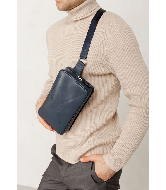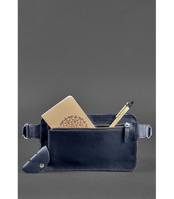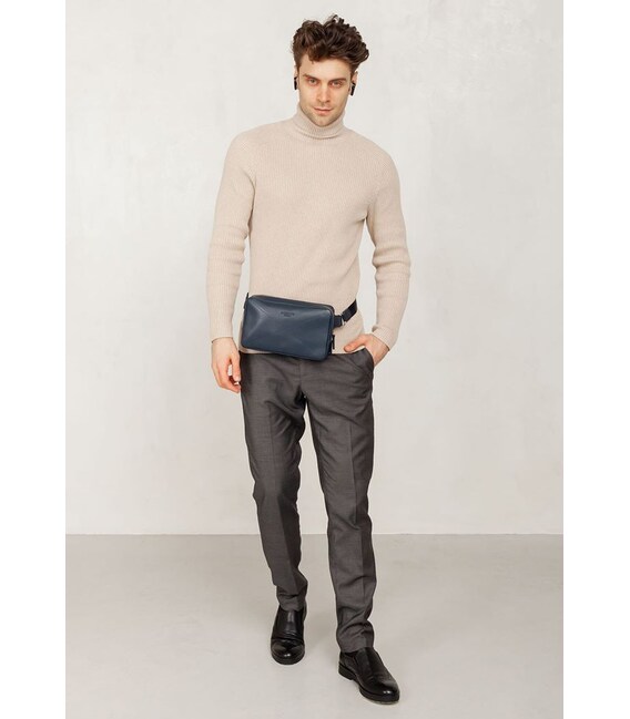 Описание Кожаная поясная сумка Dropbag Maxi темно-синяя