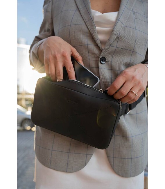 Кожаная поясная сумка Dropbag Maxi черная Crazy Horse