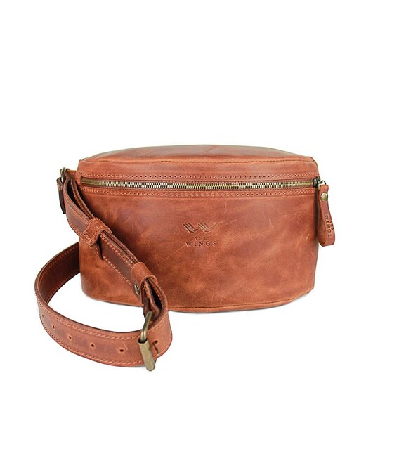 Описание Кожаная поясная сумка светло-коричневая винтажная