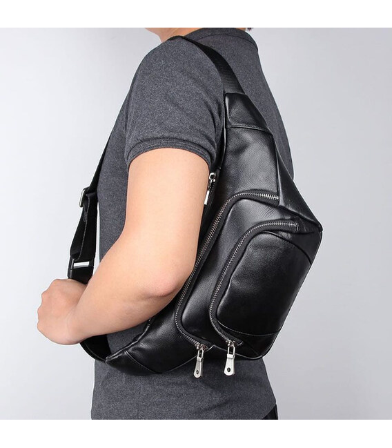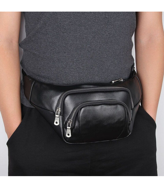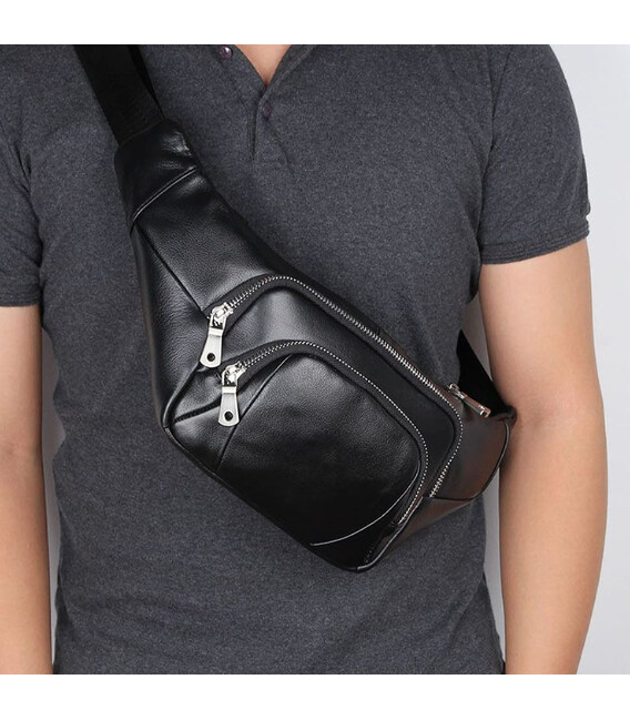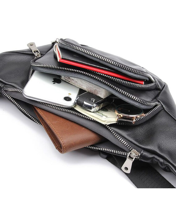 Описание Шкіряна сумка напоясна бананка через плече John McDee 3023A