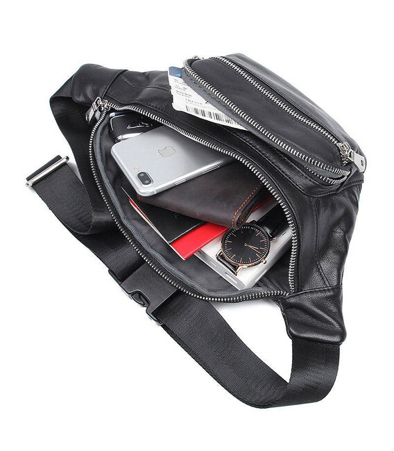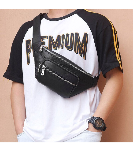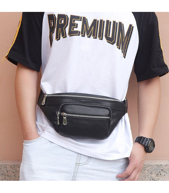 Сумка напоясний унісекс з натуральної телячої шкіри чорного кольору JD3020A, від бренду John McDee. З таким аксесуаром в будь-якій поїздці або подорожі Ваші цінні речі будуть в безпеці, а руки будуть вільні.