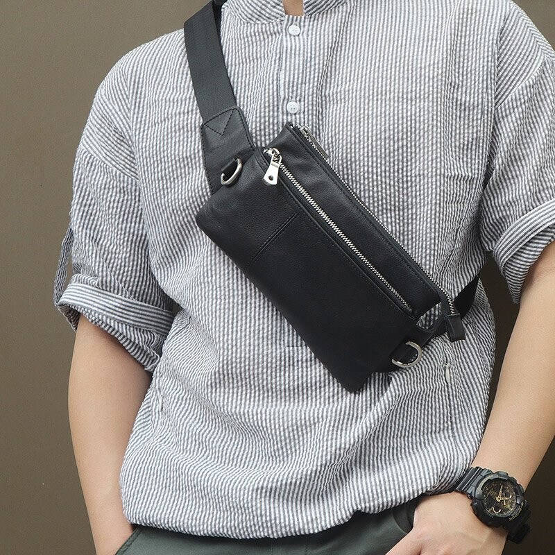Кожаная поясная сумка — практичный аксессуар для города, поездок и ежедневного использования. Модель сочетает в себе компактный формат, удобную организацию пространства и современный внешний вид, поэтому отлично подходит для мужчин, которым важно держать самые необходимые вещи всегда под рукой.