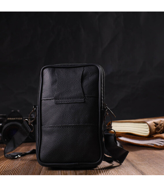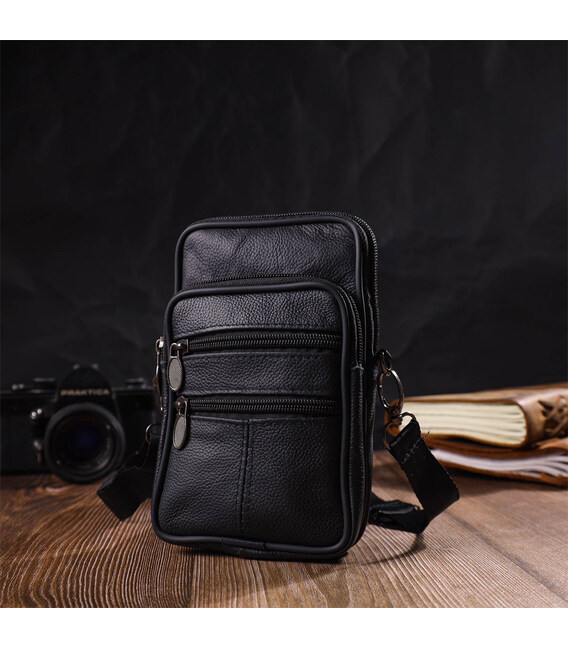 Описание Мужская сумка на пояс из натуральной кожи 21481 Vintage Черная