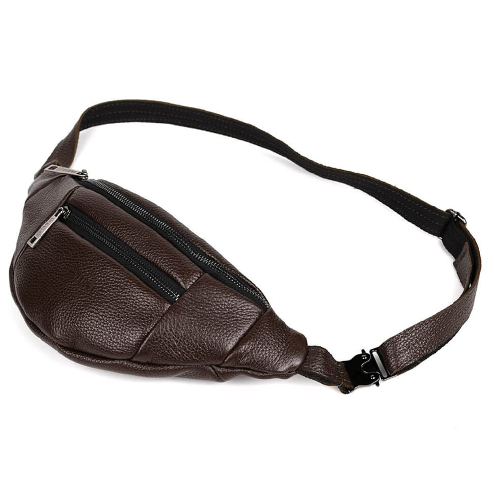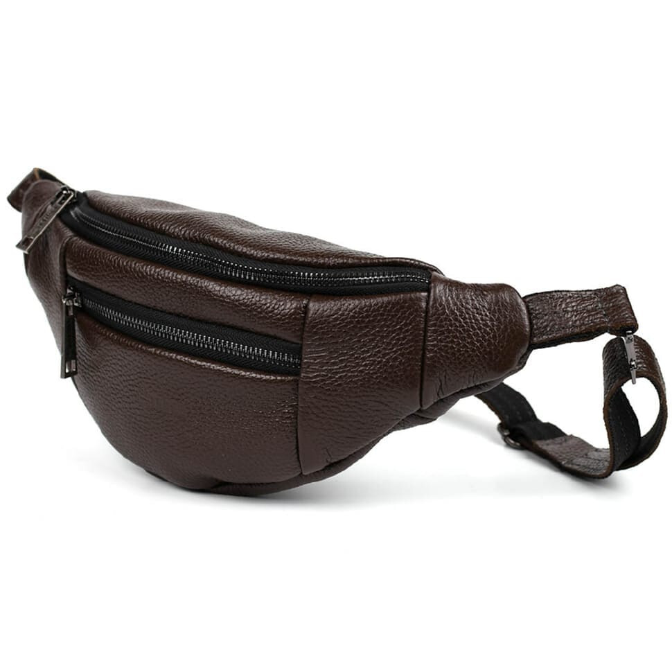 Шкіряна бананка на два відділення з передньою кишенею TARWA FC-8040-3md коричнева фото, картинка, изображение