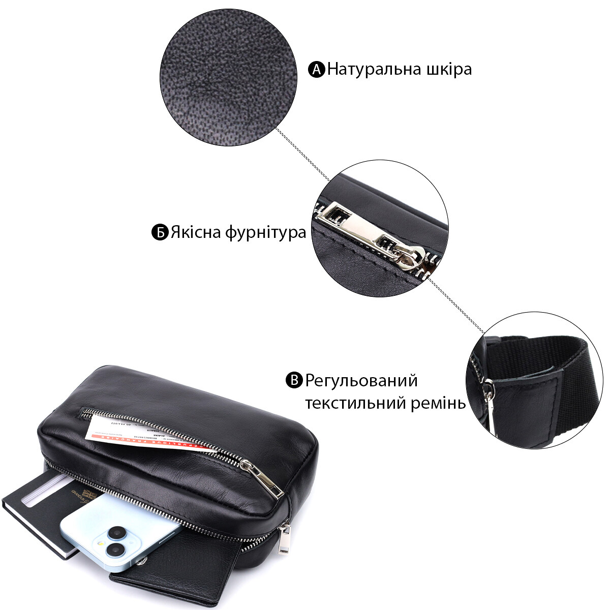 Мужская сумка бананка из натуральной гладкой кожи высокого качества. Бананка – одна из самых популярных моделей среди наших клиентов. Внутренние отделения позволяют хранить небольшие предметы повседневного использования в пределах досягаемости руки, такие как ключи, очки, мобильный телефон, визитница, картхолдер и личные вещи. Держите свои ценные вещи под рукой, сохраняя модный вид. В сумке использована качественная фурнитура, ремешок закрывается на фастекс.Такой аксессуар станет прекрасным подарком для близкого человека.