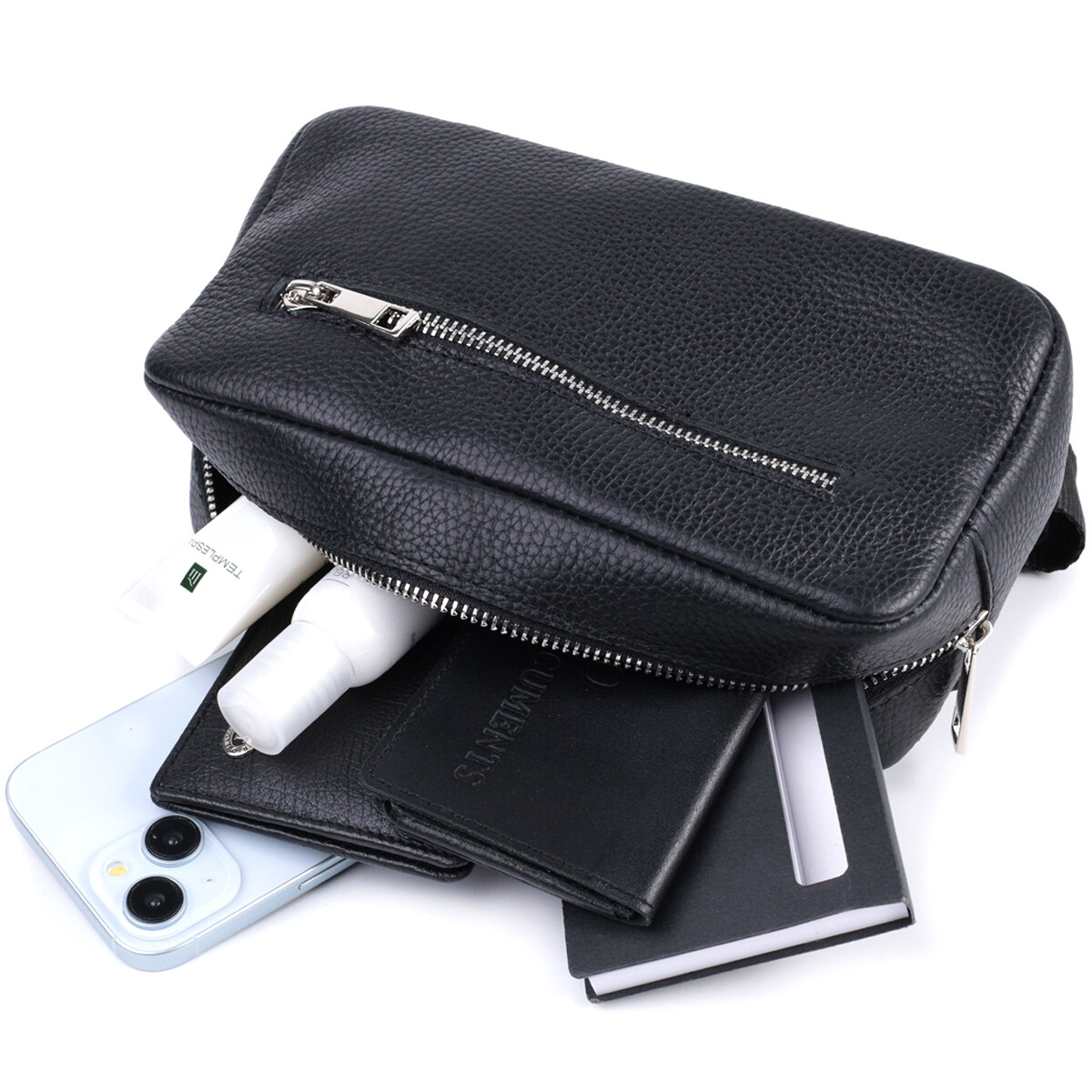 Стильная мужская сумка бананка из натуральной зернистой кожи высокого качества. Бананка – одна из самых популярных моделей среди наших клиентов. Внутренние отделения позволяют хранить небольшие предметы повседневного использования в пределах досягаемости руки, такие как ключи, очки, мобильный телефон, визитница, картхолдер и личные вещи. Держите свои ценные вещи под рукой, сохраняя модный вид. В сумке использована качественная фурнитура, ремешок закрывается на фастекс.Такой аксессуар станет прекрасным подарком для близкого человека.