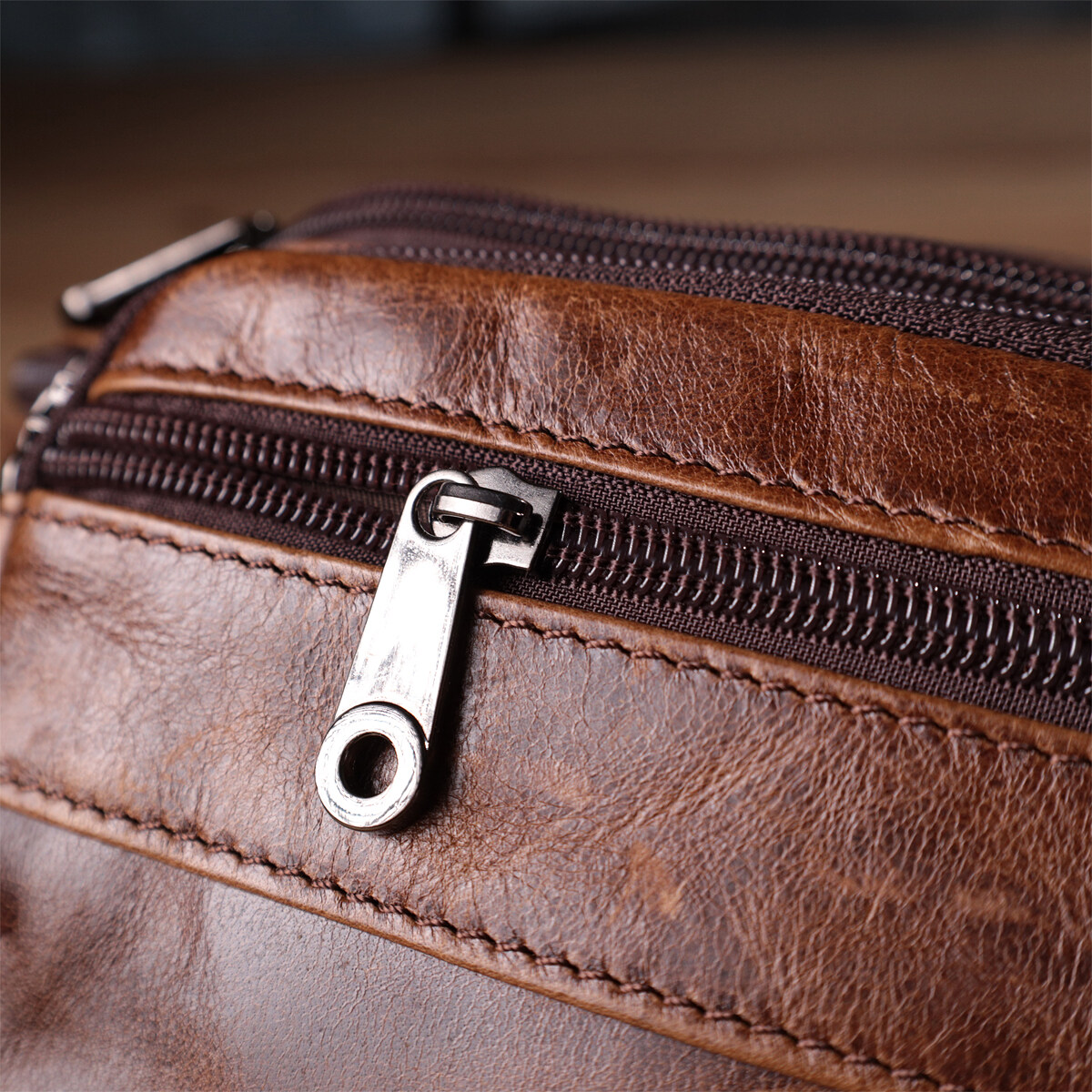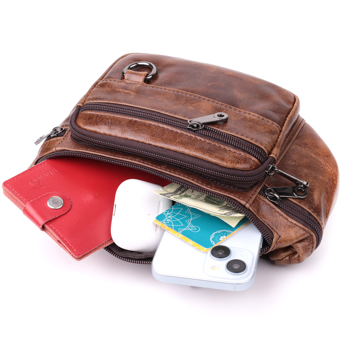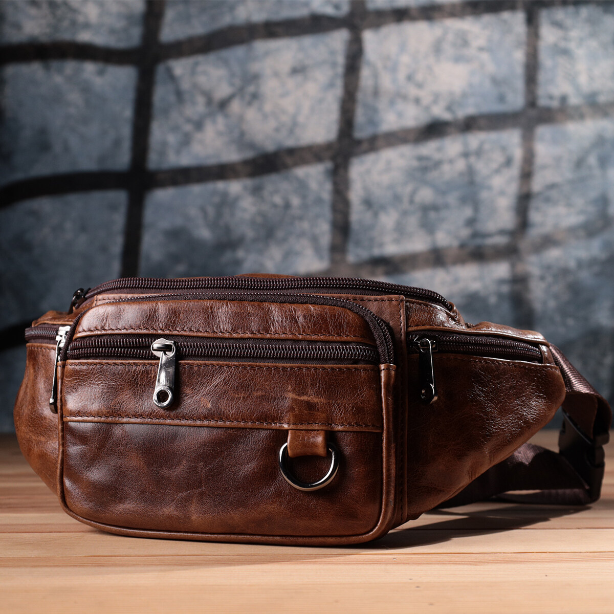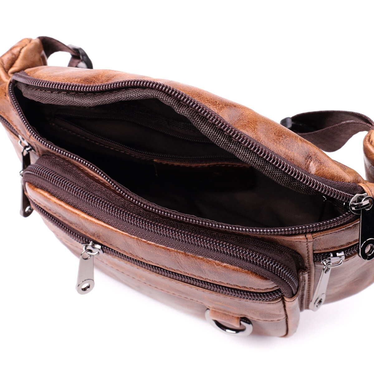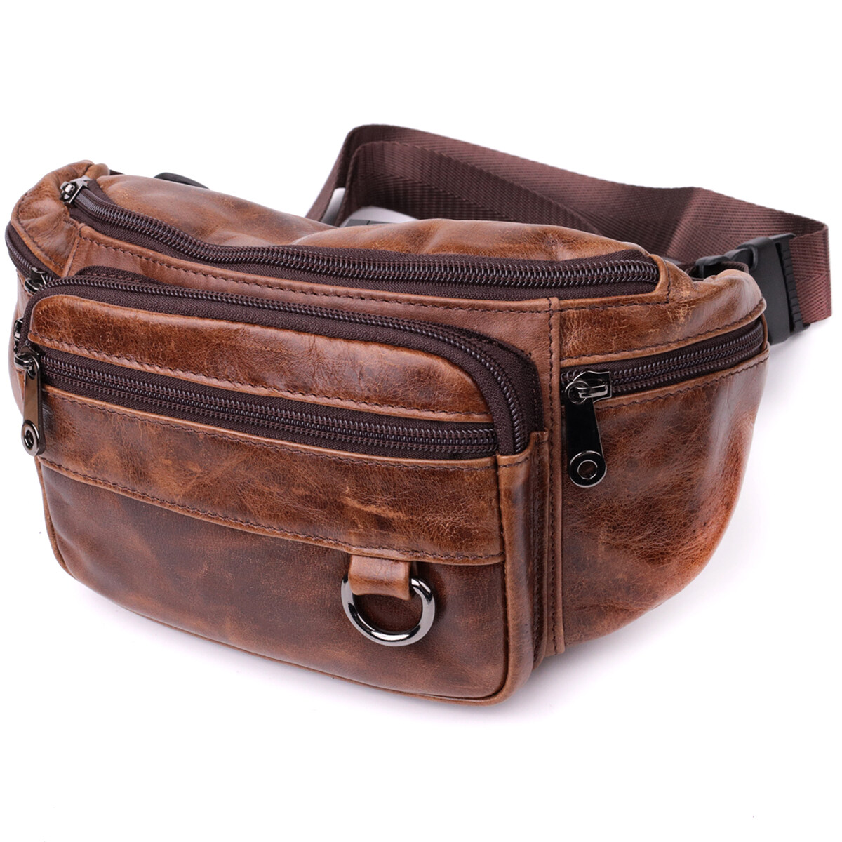 Красивая мужская сумка на пояс из натуральной кожи высокого качества. Имеет просторное основное отделение и пять внешних карманов различного размера, что очень удобно и практично. Ремень выполнен из крепкого текстиля. Такая сумка станет хорошим подарком для близкого человека.