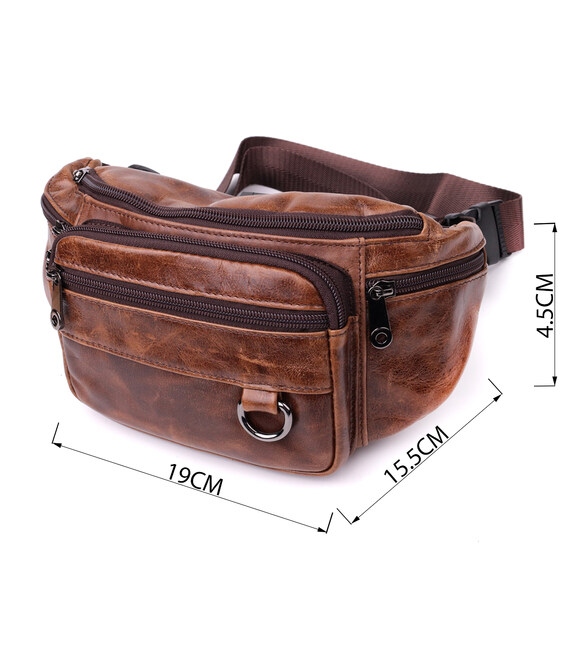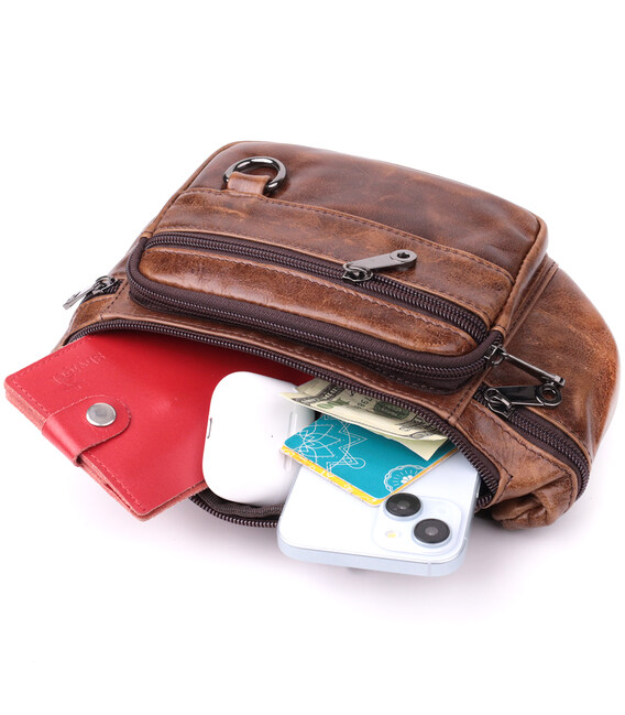 Бананка для мужчин в винтажном стиле из натуральной кожи Vintage sale_15106 Коричневый