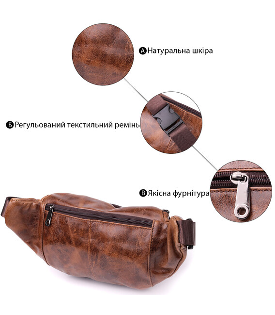 Описание Бананка для мужчин в винтажном стиле из натуральной кожи Vintage sale_15106 Коричневый