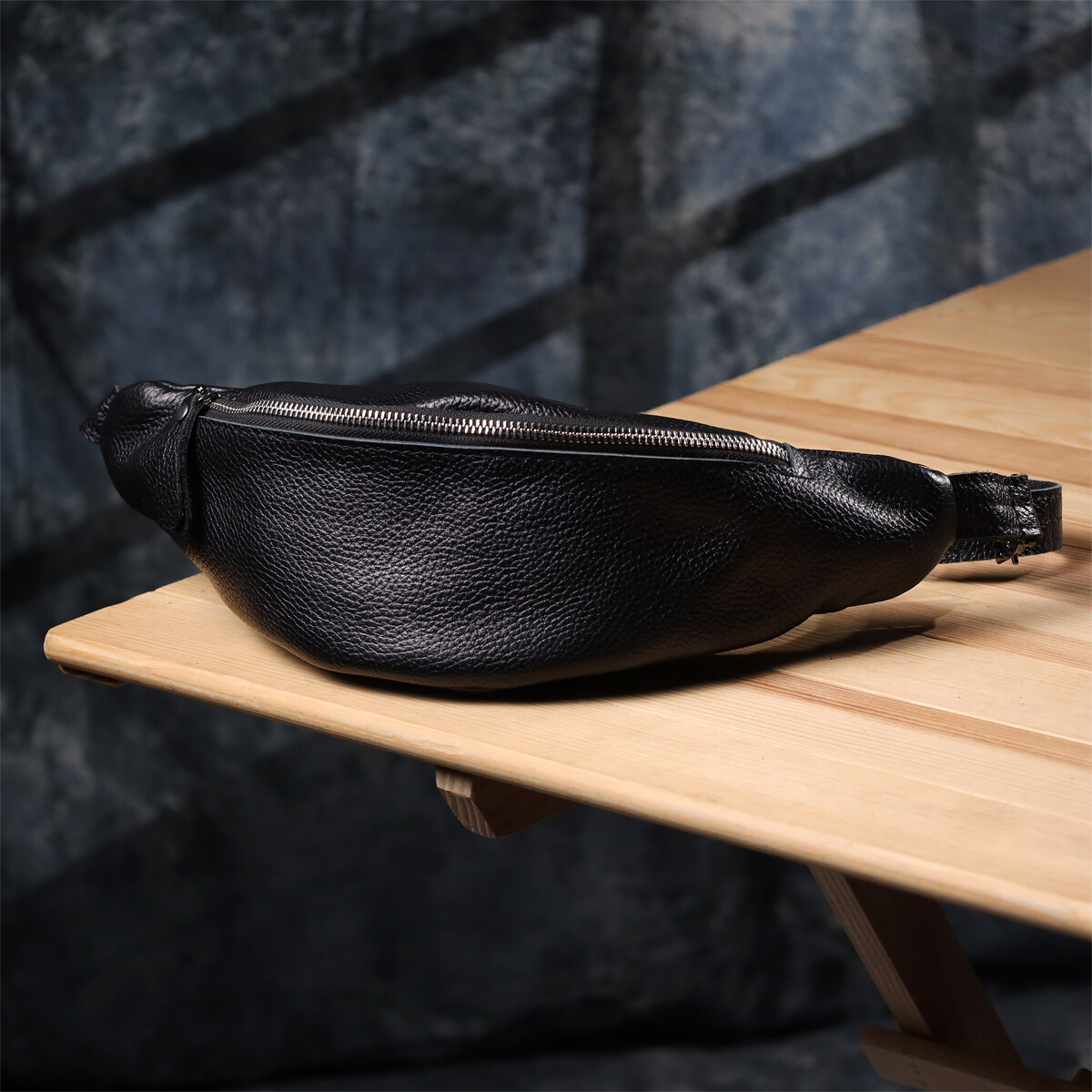 Сумка-бананка в черной коже флотар — это не просто аксессуар, а отражение вкуса, практичности и уверенного стиля.