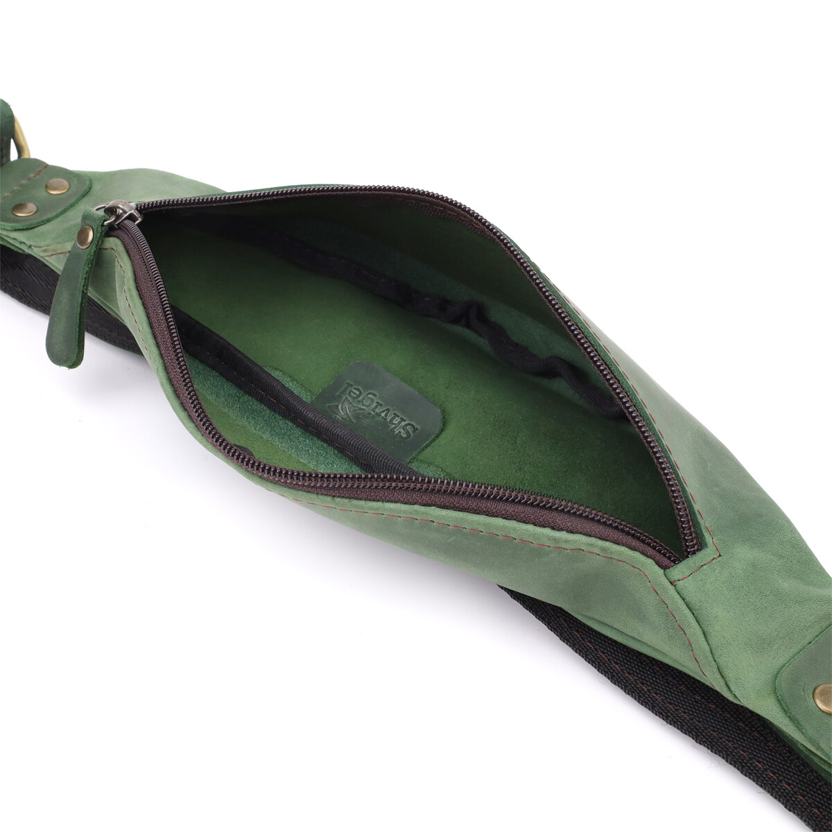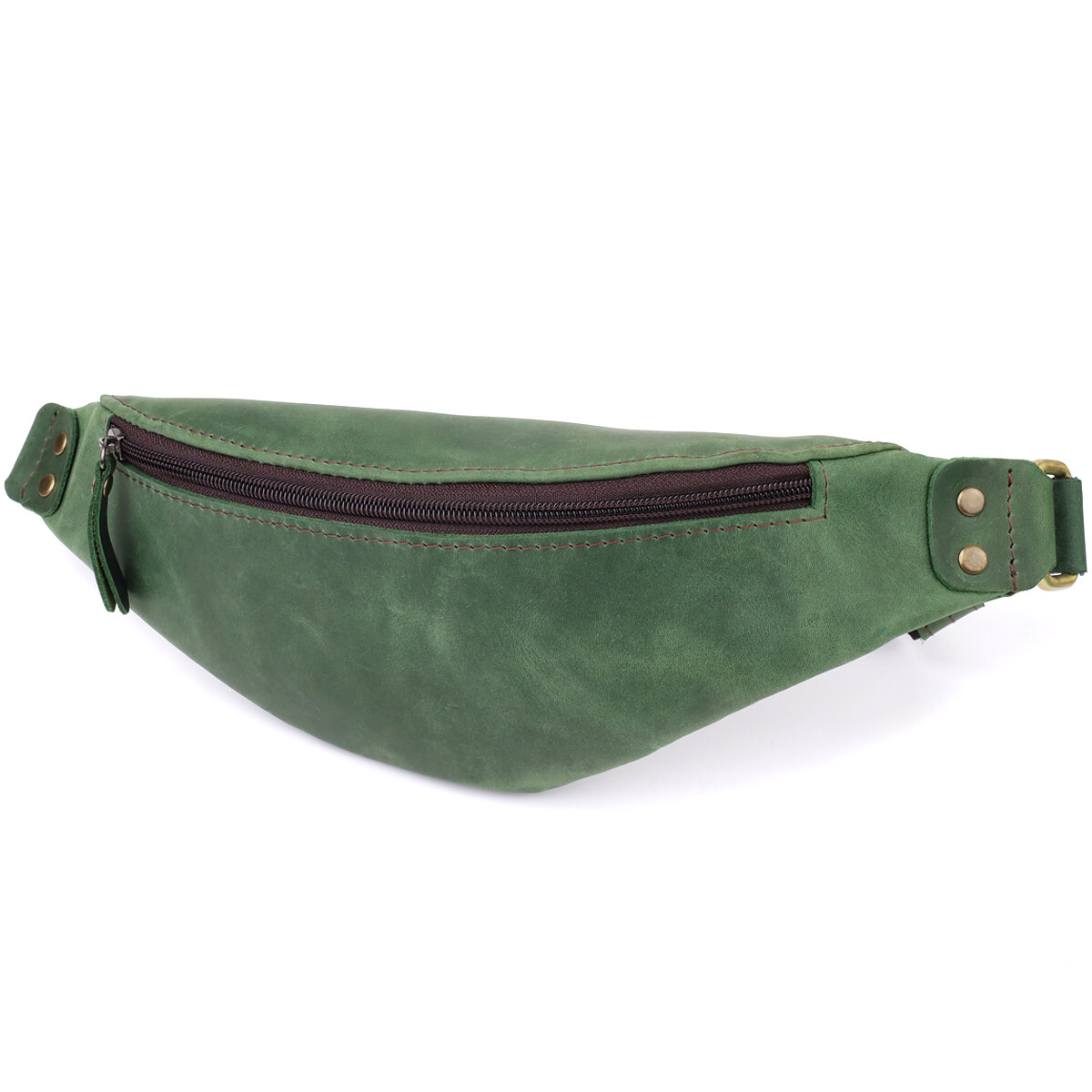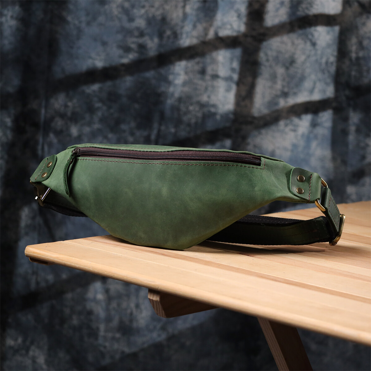 Сумка-бананка в зелёном цвете — это свежий взгляд на привычный аксессуар. Она подойдёт тем, кто любит выделяться с вкусом и предпочитает практичные вещи с характером. Прекрасный подарок для мужчины, ценящего стиль, комфорт и надёжность.