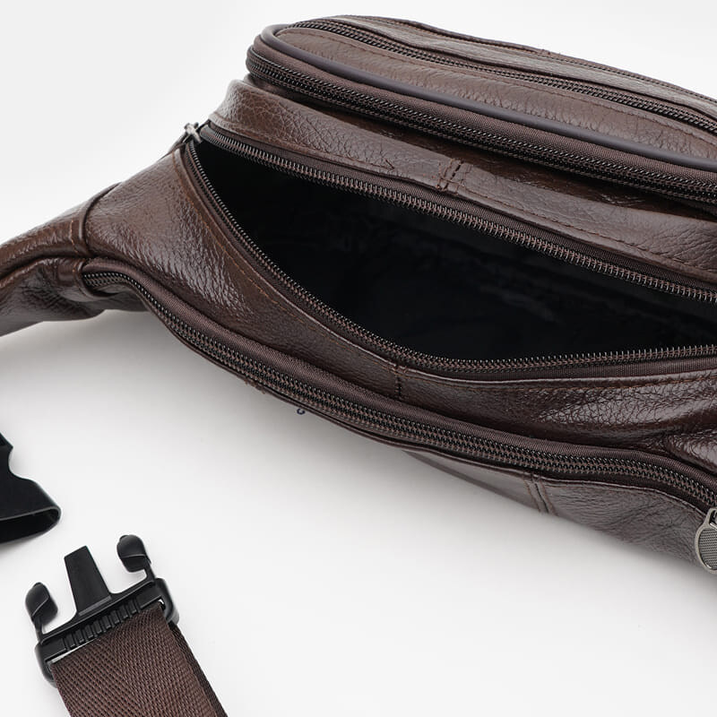 Сумка на пояс выполнена из натуральной кожи. Имеет 2 отделения на молнии. Снаружи 2 кармана на молнии. Подкладка-текстиль. Поясной ремень регулируется по длине.