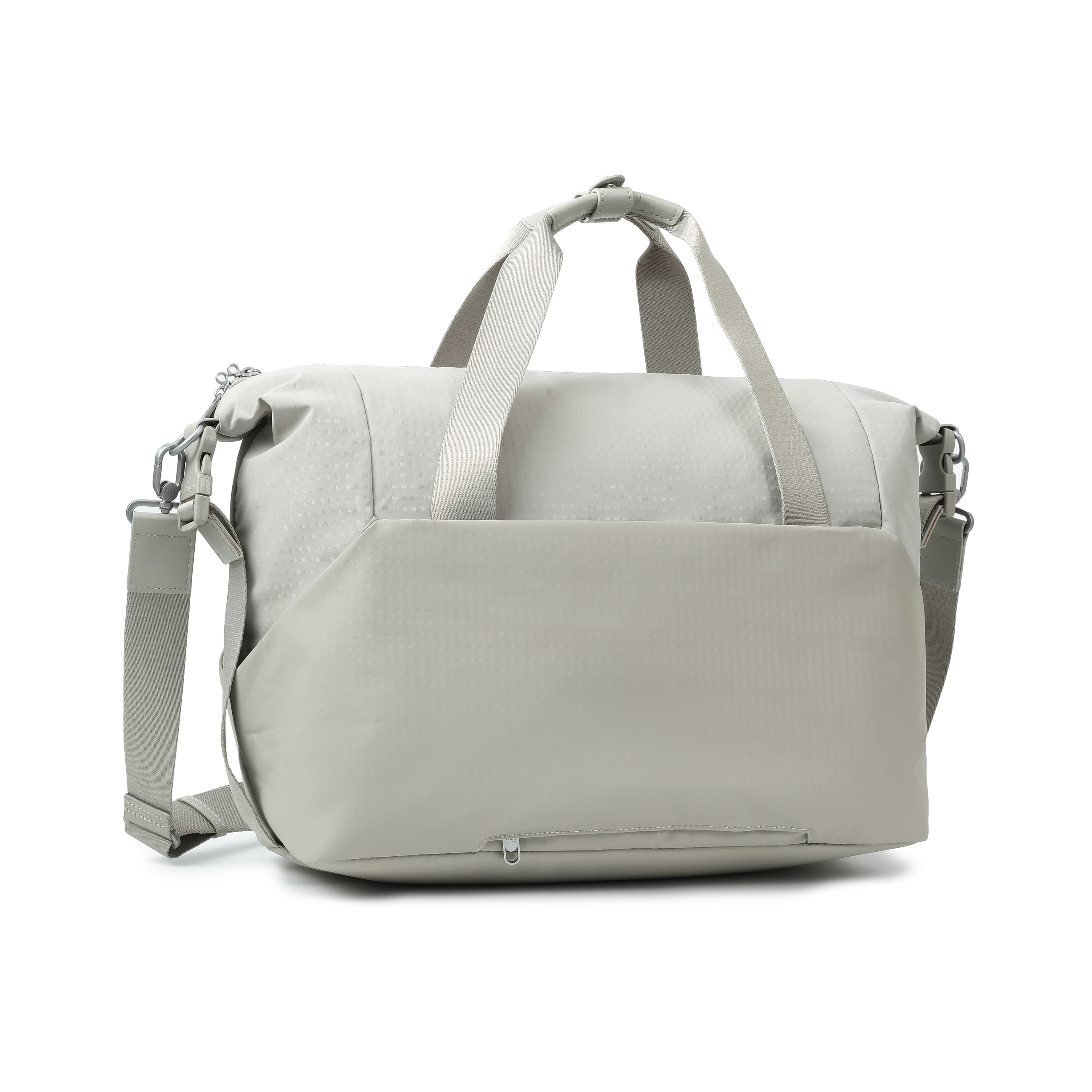 Удобная, многофункциональная сумка изготовлена из переработанной ткани в сочетании с эко-кожей. Оснащена основным отделением на молнии с отделом для смартфона и дополнительным карманом на молнии с RFID-защитой. Молния на основном отделе предусматривает возможность разместить навесной замок для обеспечения дополнительной безопасности ценных вещей. Открытый боковой карман для бутылки или зонтика, второй боковой на молнии для мелких вещей, также два кармана на передней части изделия для вещей первой необходимости. На заднем кармане изделия, предусмотрена утопленная молния, которая плотно прилегает к телу, как дополнительное средство безопасности, данный карман, при необходимости, благодаря молнии превращается в планку для фиксации на телескопическую ручку чемодана, что безусловно облегчает передвижение во время путешествий. Полуавтоматические застежки, потому что бокам сумки созданы для того, чтобы при необходимости менять изделие в размере и брать на борт самолета, как ручную кладь. Дополнительно оснащена плечевыми лямками и съемным плечевым ремнем.