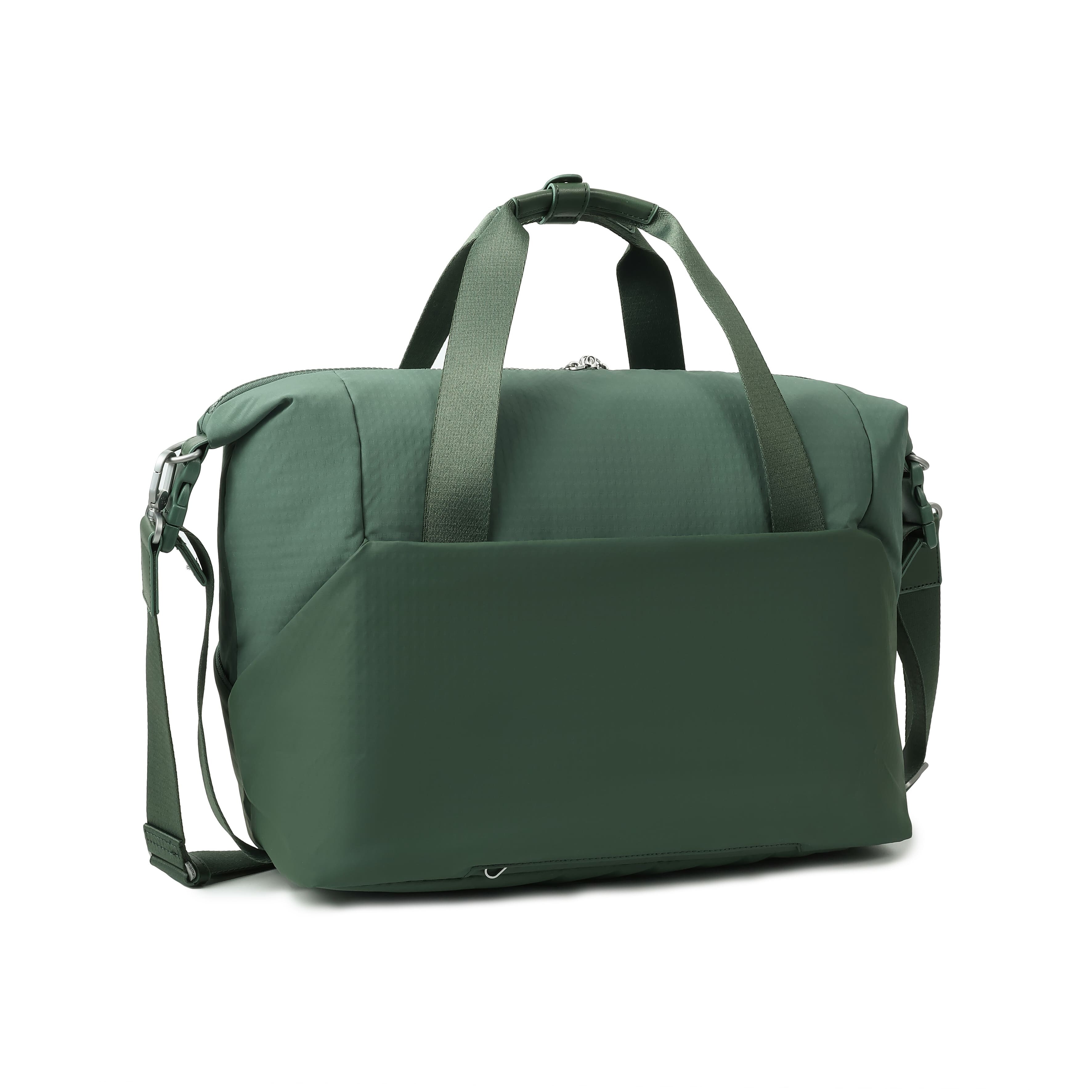 Удобная, многофункциональная сумка изготовлена из переработанной ткани в сочетании с эко-кожей. Оснащена основным отделением на молнии с отделом для смартфона и дополнительным карманом на молнии с RFID-защитой. Молния на основном отделе предусматривает возможность разместить навесной замок для обеспечения дополнительной безопасности ценных вещей. Открытый боковой карман для бутылки или зонтика, второй боковой на молнии для мелких вещей, также два кармана на передней части изделия для вещей первой необходимости. На заднем кармане изделия, предусмотрена утопленная молния, которая плотно прилегает к телу, как дополнительное средство безопасности, данный карман, при необходимости, благодаря молнии превращается в планку для фиксации на телескопическую ручку чемодана, что безусловно облегчает передвижение во время путешествий. Полуавтоматические застежки, потому что бокам сумки созданы для того, чтобы при необходимости менять изделие в размере и брать на борт самолета, как ручную кладь. Дополнительно оснащена плечевыми лямками и съемным плечевым ремнем.