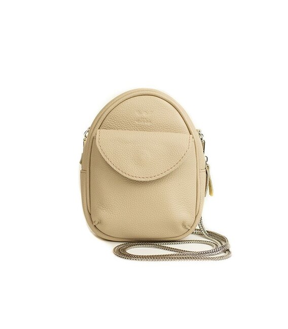 Кожаная женская мини-сумка Kroha бежевая флотар