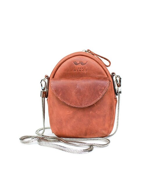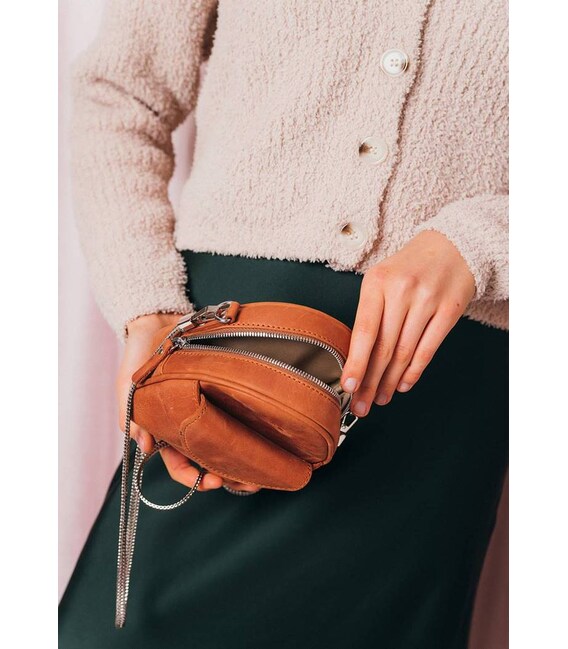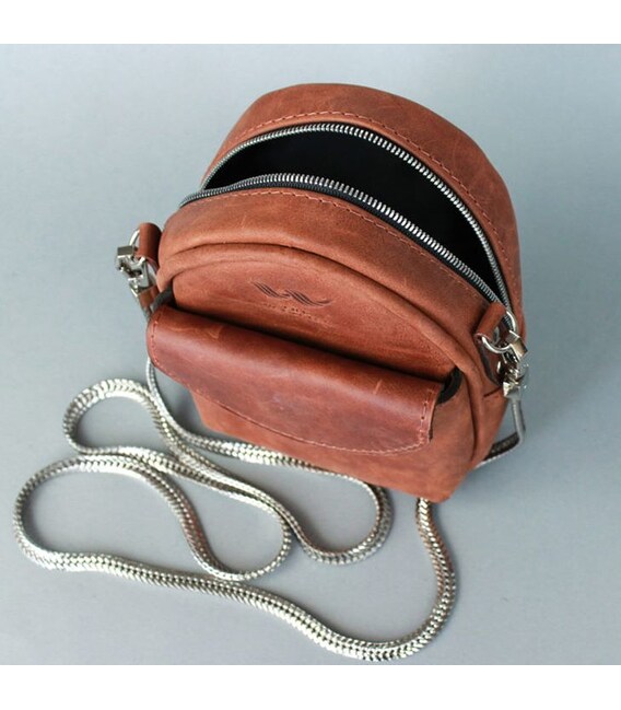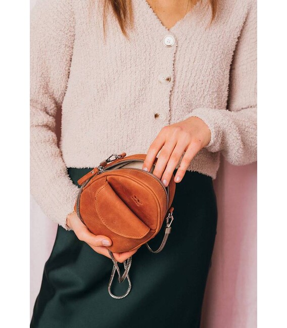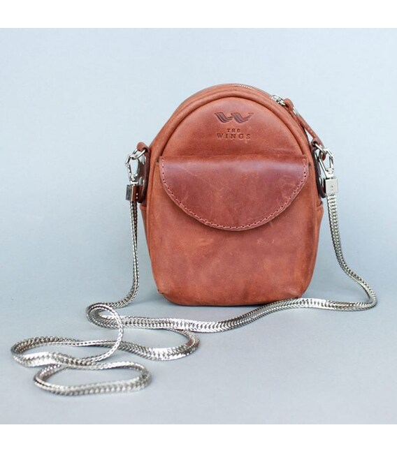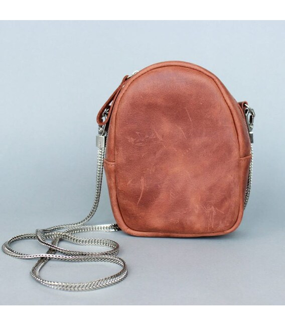 Описание Кожаная женская мини-сумка Kroha коньячная винтажная
