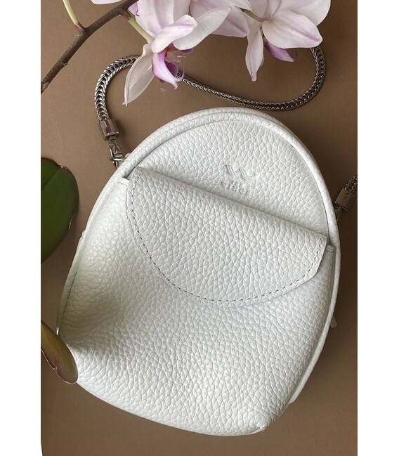 Кожаная женская мини-сумка Kroha белая флотар