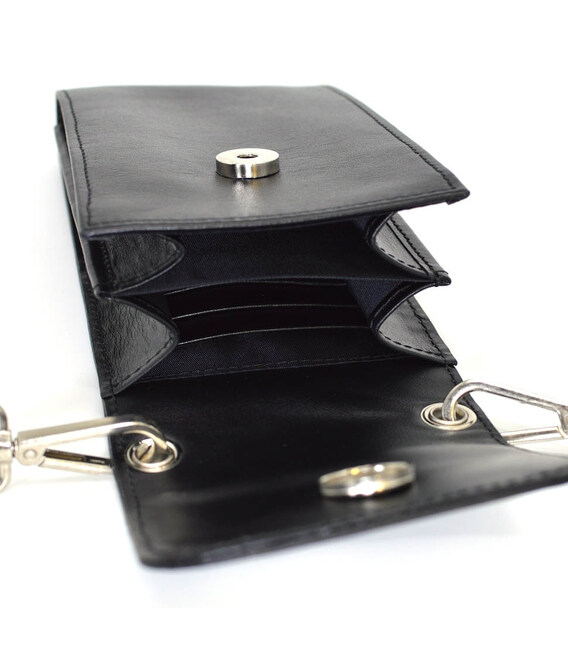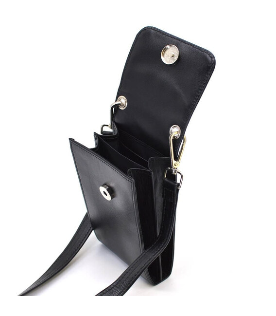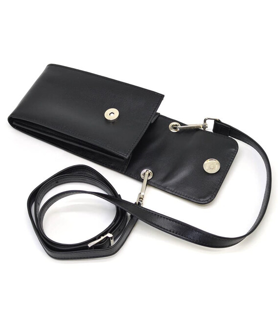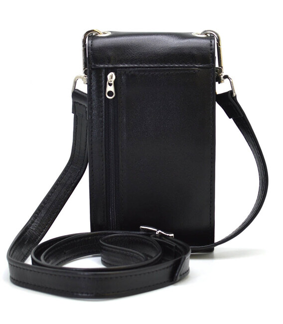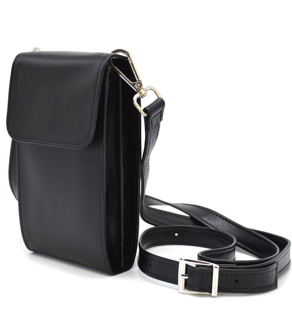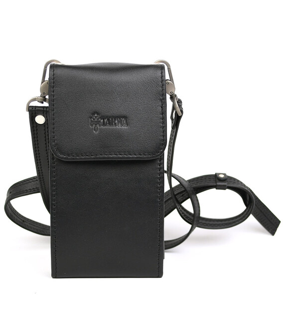 Сумка-чохол для телефону, панч TARWA GA-2122-4lx TARWA, чорна з шкіряним ременем з пряжкою та регулюванням довжини. Закривається клапан на магнітній кнопці. Усередині два вільні відділення. Позаду кишеню на блискавці для карт або дрібниці.