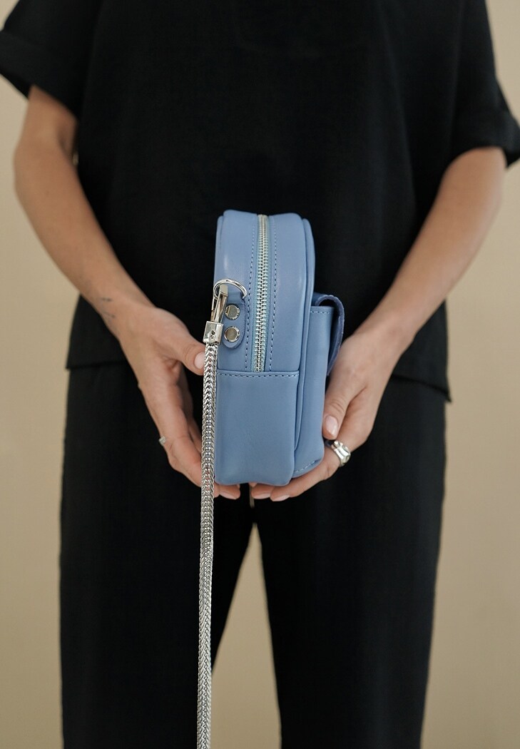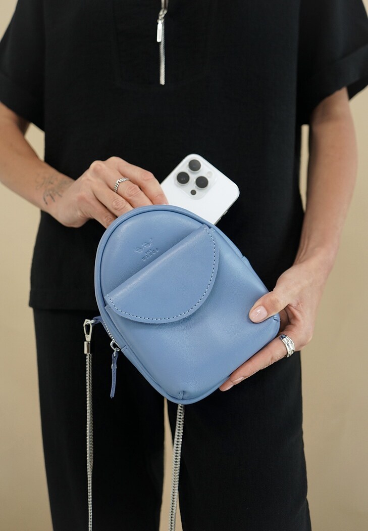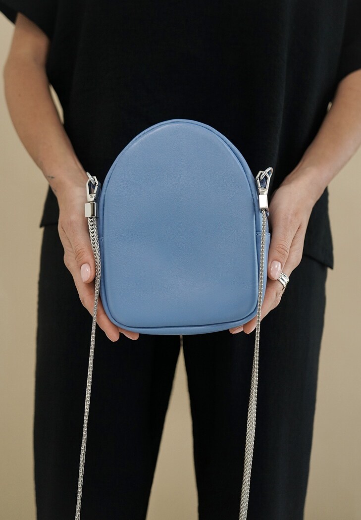 Кожаная женская мини-сумка Kroha голубой краст фото, картинка, изображение